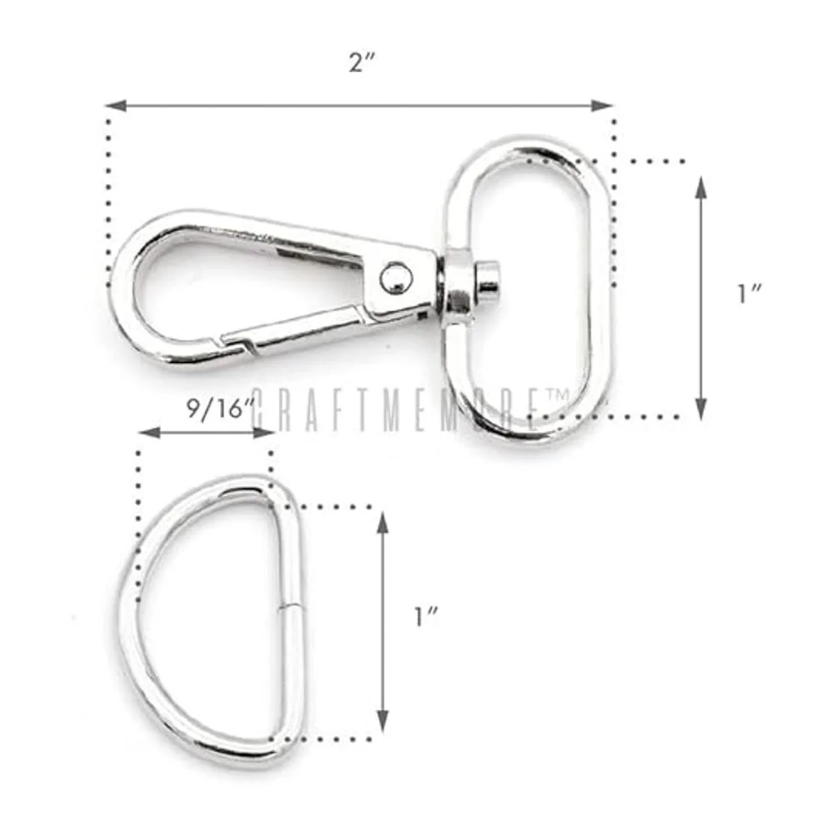 CRAFTMEMORE 10 juegos de ganchos plateados con cierre de langosta giratorio, clips de moda con anillos en D para manualidades FSD1 (1 pulgada)