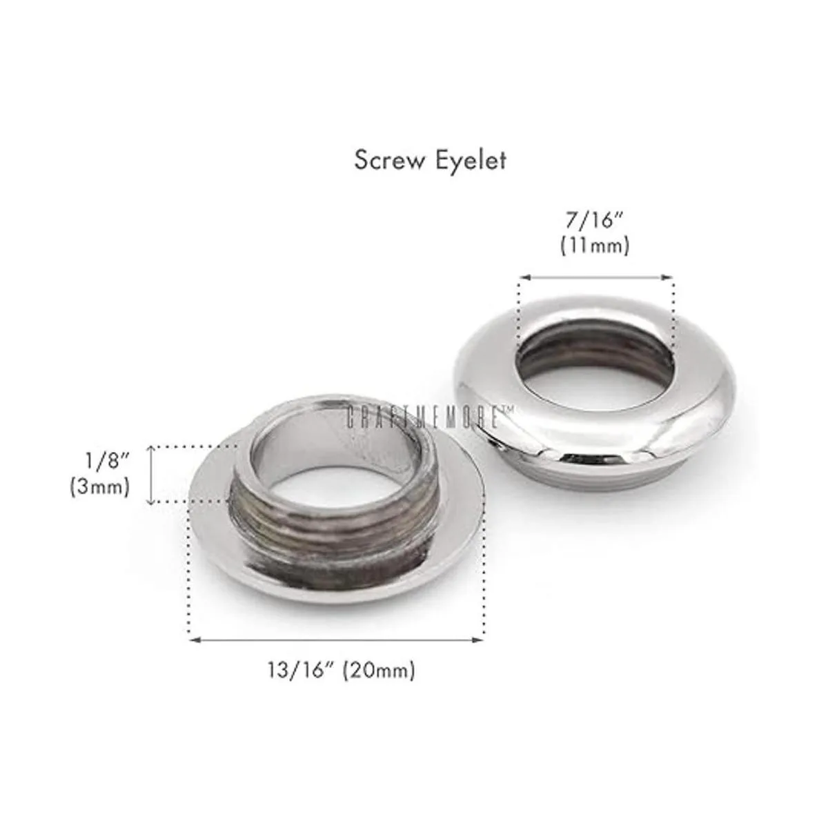CRAFTMEMORE 716 pulgadas 0.433 in, anillos de tornillo de metal con ojales, calidad redonda pulida, reemplazo de monedero, fácil instalación, paquete de 4 brocas plata