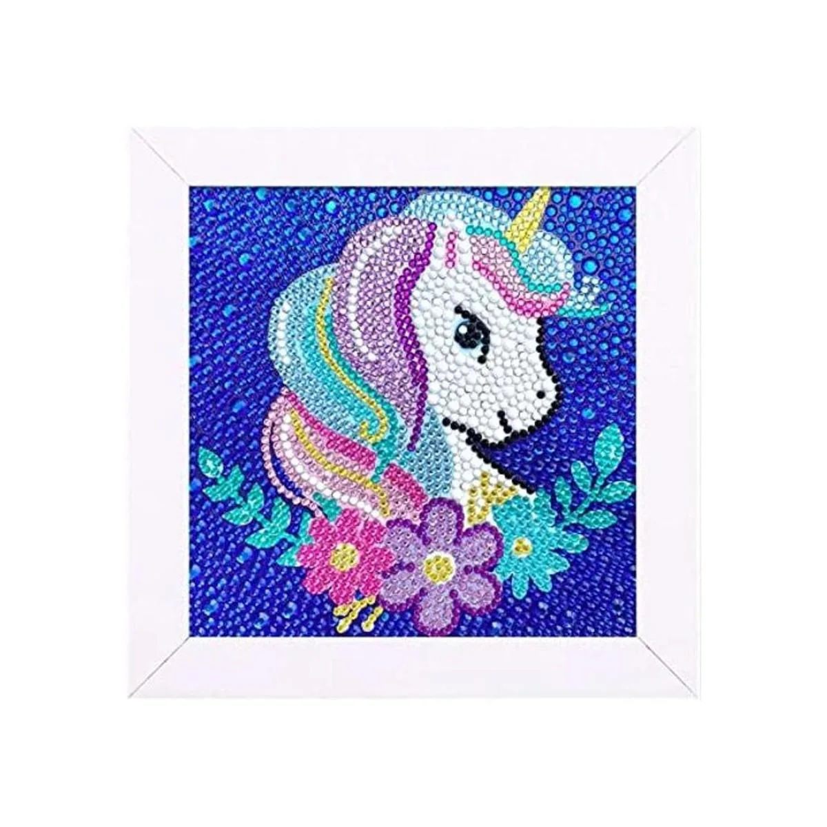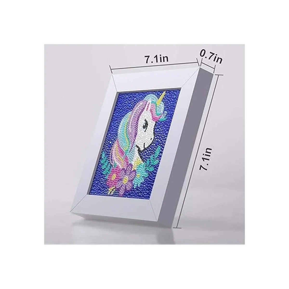 Exhibición y decoración: nuestro kit de pintura de diamantes viene con un marco de fotos premontado. Marco de fotos de 6.0 x 6.0 in, lienzo de 5.0 x 5.0 in. Es muy adecuado para la decoración en la mesa y colgar en la pared de casa, como habitación del bebé, sala de estar, etc. Es perfecto para decorar la habitación.