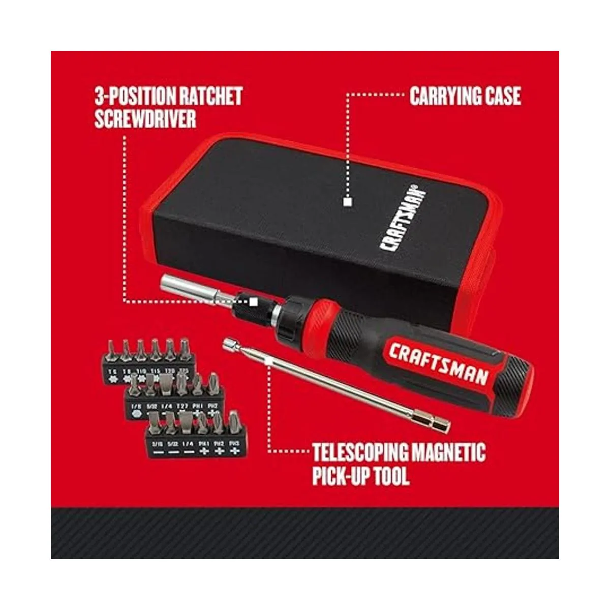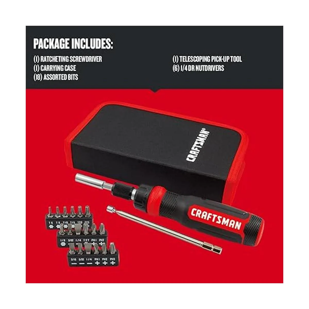 CRAFTSMAN Juego de destornilladores de trinquete, multibits, 26 piezas (CMHT68001)