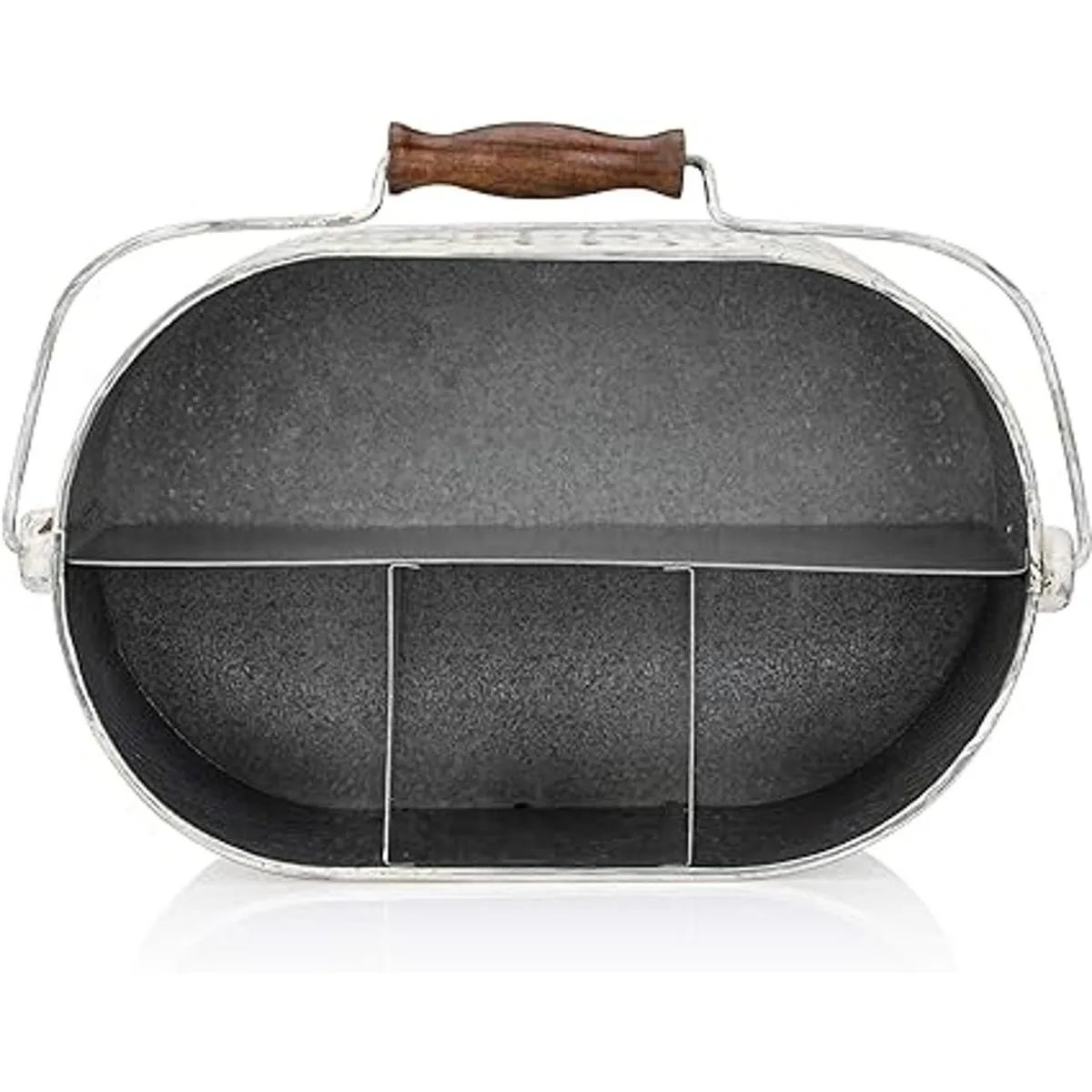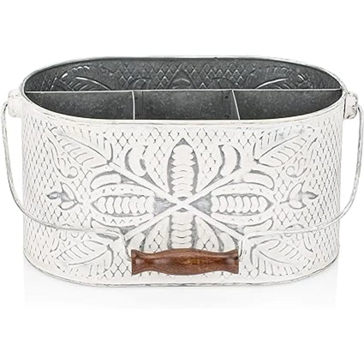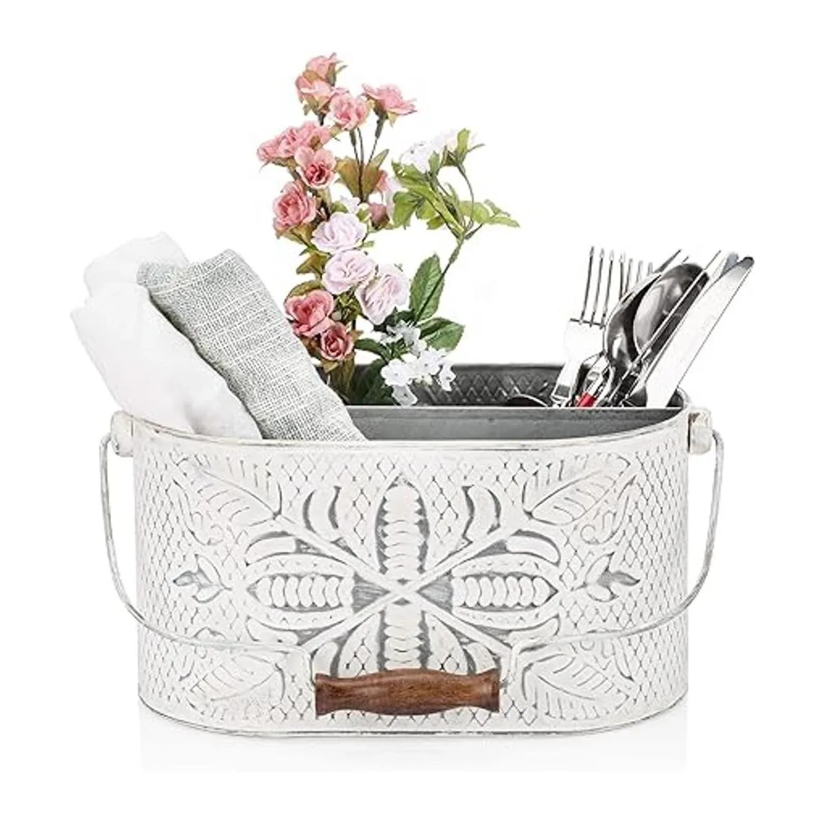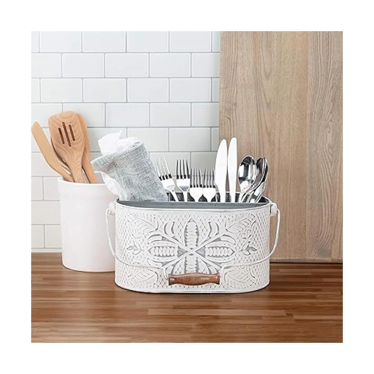 Craftsman Road Organizador de cocina galvanizado de estilo rústico vintage con asa para servilletas, platos, cubiertos, suministros de limpieza