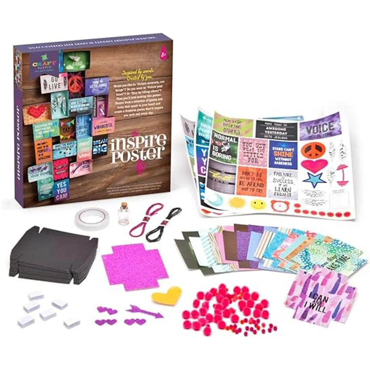 Kit completo de arte y manualidades para adolescentes y adolescentes: el kit de póster Crafttastic Inspire incluye todo lo necesario para crear un póster inspirador único.