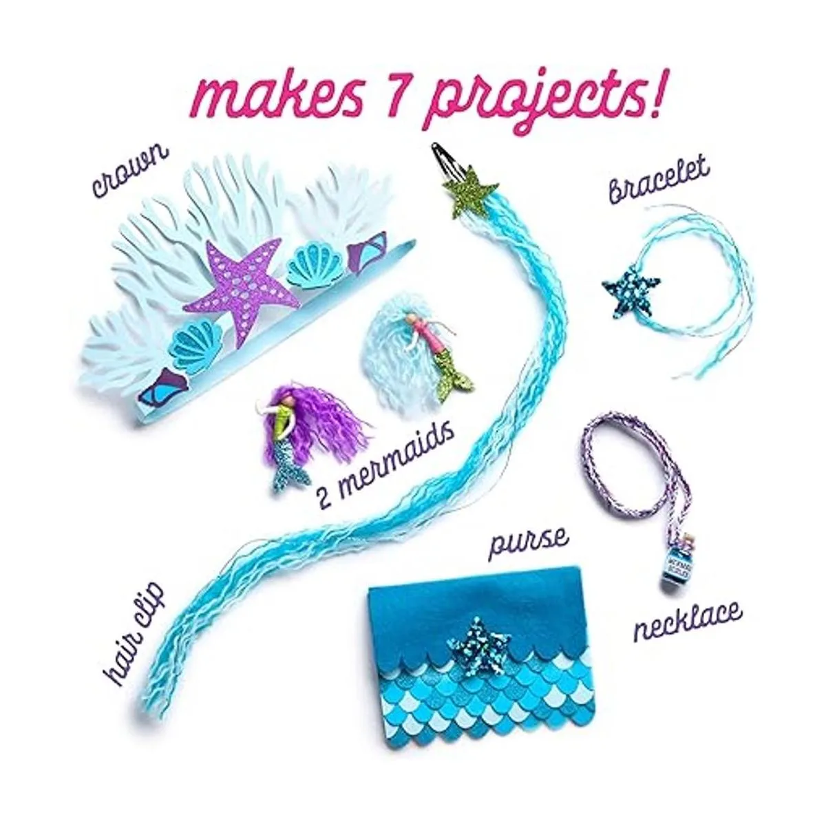 Diversión para hacer y jugar: los niños crearán una pulsera de sirena, accesorio para el pelo de estrella, cartera de sirena, collar, corona de sirena y dos pequeñas muñecas de sirena.