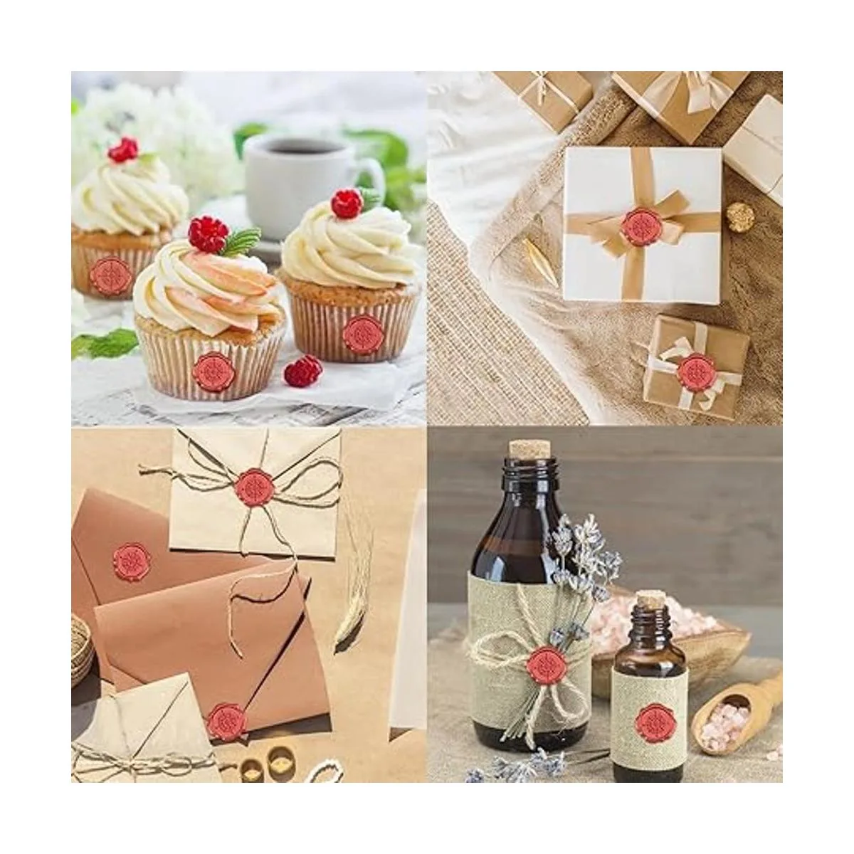 Amplias aplicaciones: estas calcomanías de sello de cera se pueden utilizar ampliamente como decoración de muchos proyectos, como tarjetas de invitaciones de boda, mapas, botellas, sobres, paquetes, álbumes de recortes, álbumes de fotos, regalos, sellado de vino, embalaje de té o cosméticos.
