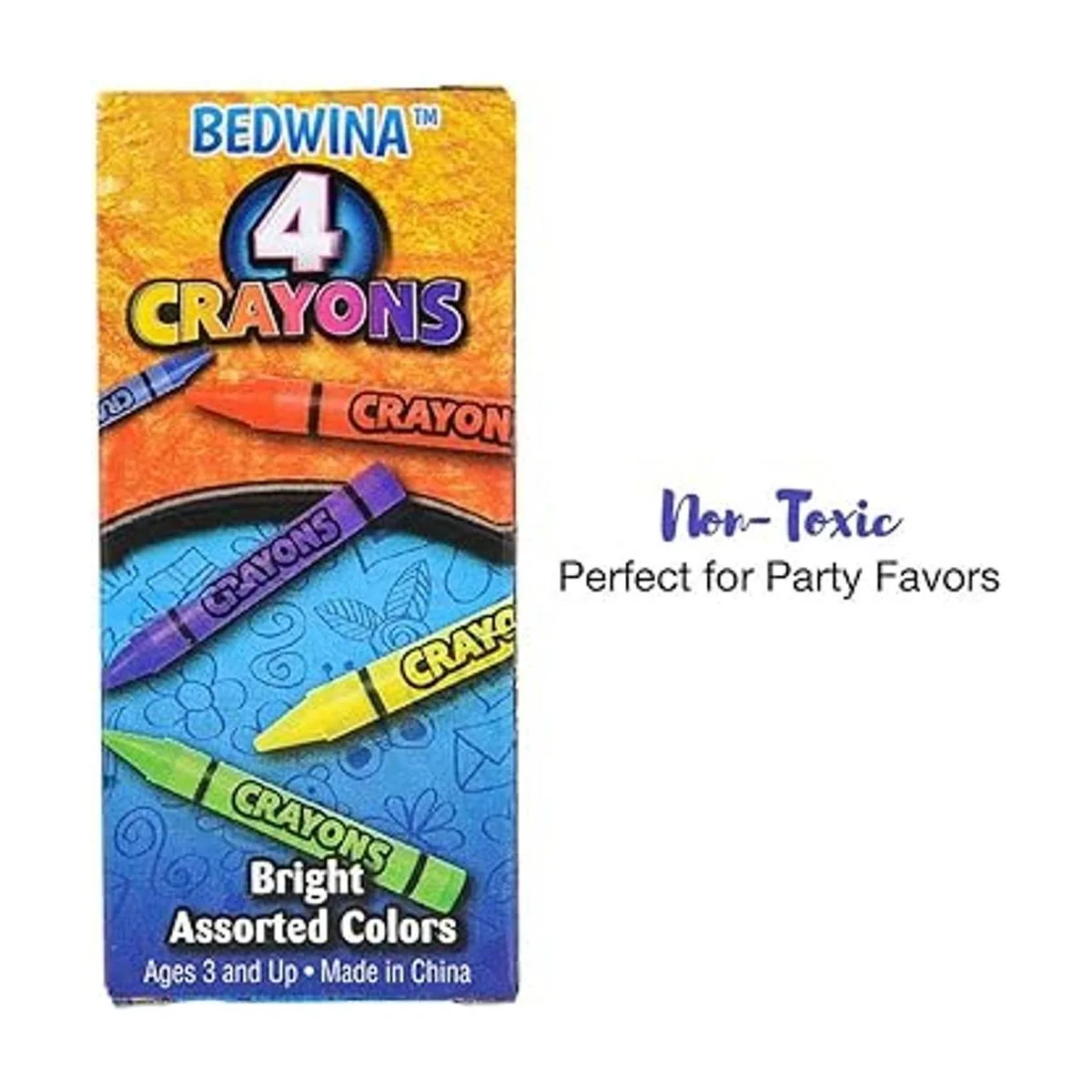 Increíble oferta. 144 paquetes de crayones: imagina poder tener recuerdos de fiesta para regalar durante el resto del año Debido a que estos crayones vienen con 144 paquetes de 4 crayones de colores separados, eso significa que obtienes un total de 576 crayones por un gran valor. Esto es ideal para ti porque ahora puedes tener un suministro ilimitado de crayones para que tú y tus hijos coloreen tu obra maestra