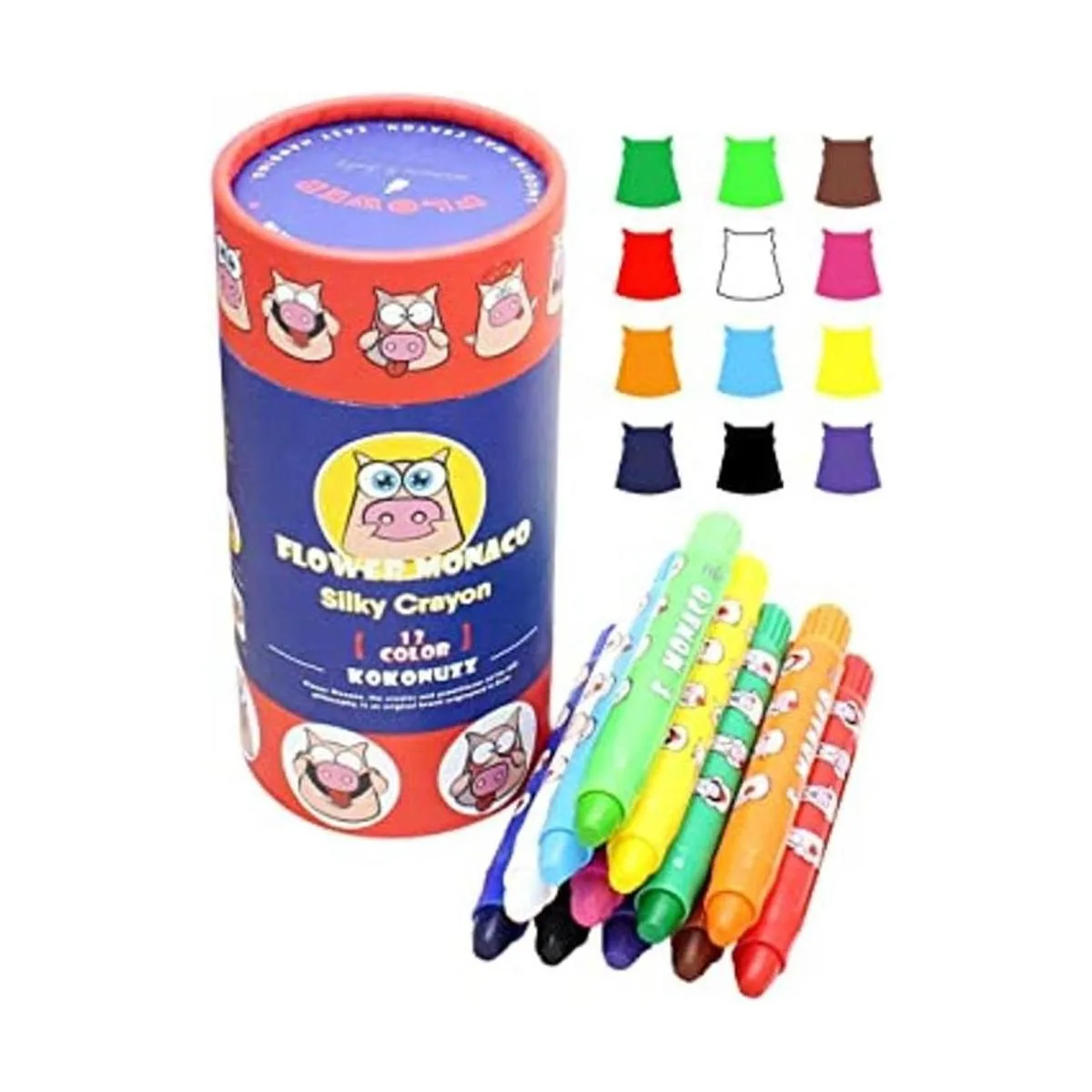 Crayones de 12 colores para niños pequeños, crayones no tóxicos Kokonuzz, crayones sedosos lavables para bebés, crayones de gel giratorios, seguros para bebés, niños y niños, flores Mónaco