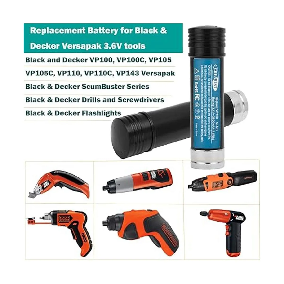 Creabest Paquete de 2 baterías de repuesto NiMH de 3.6 V 3500 mAh para Black Decker Versapak Battery VP100 VP100C VP105 VP105C VP110 VP110C VP143 Model Power Tools