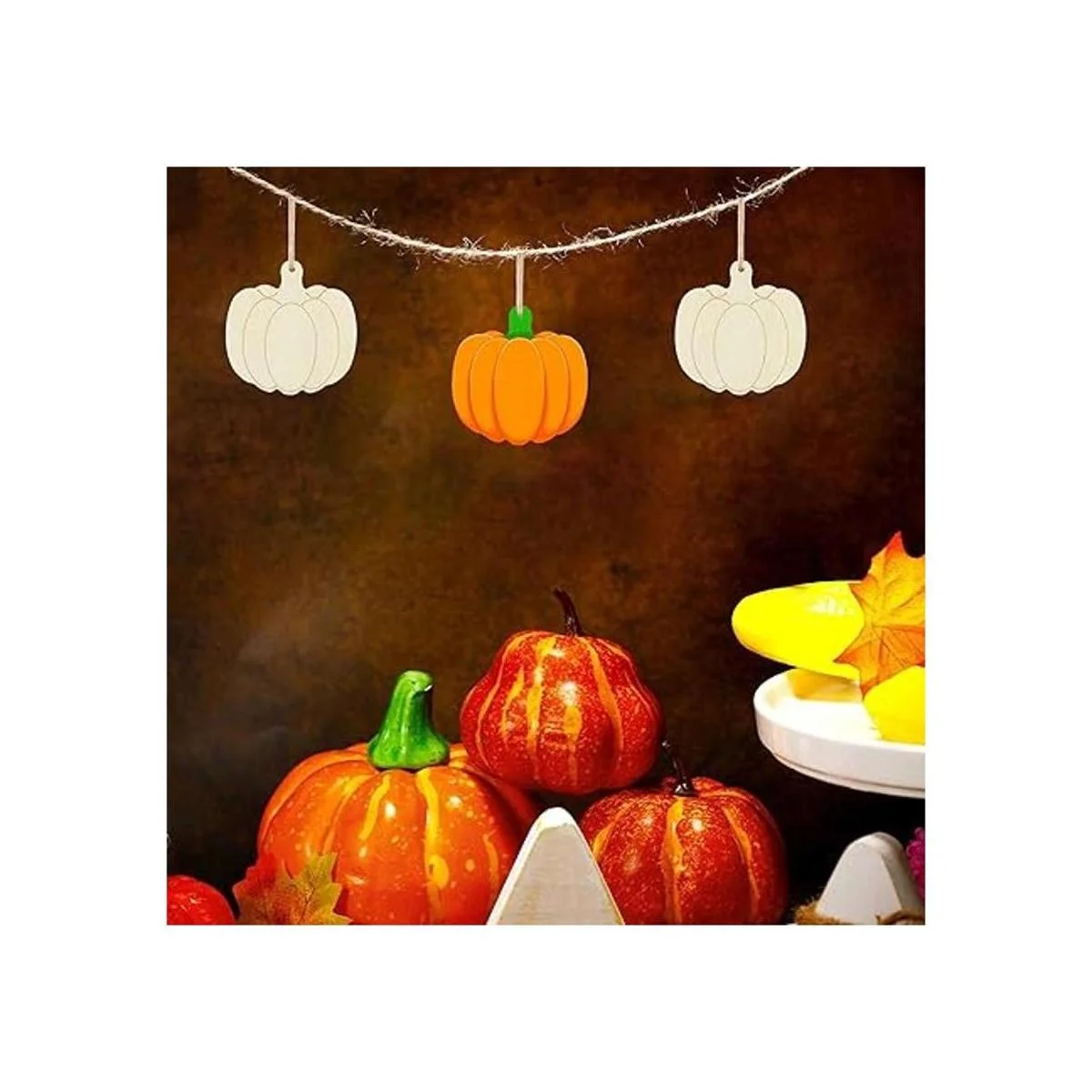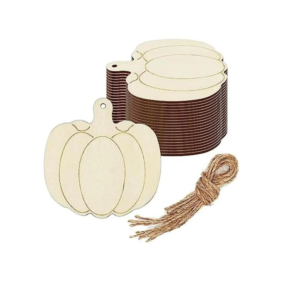 Características: adornos colgantes de madera con forma de calabaza, con un agujero y cuerda, se pueden utilizar para colgar la decoración. Perfecto para usar como etiquetas, tablero de fiesta, tablero de aula.