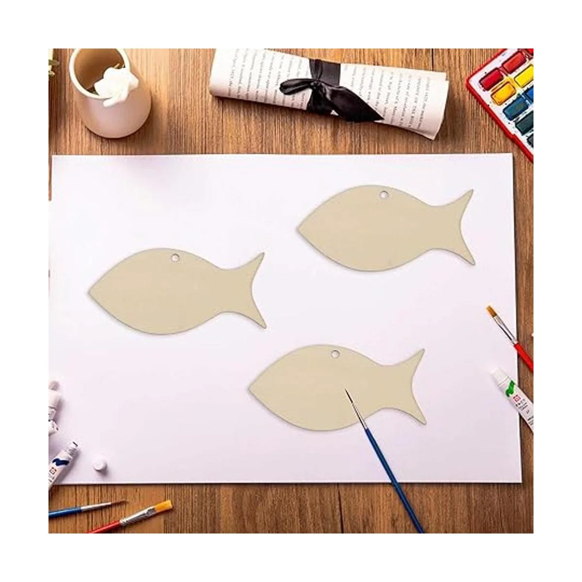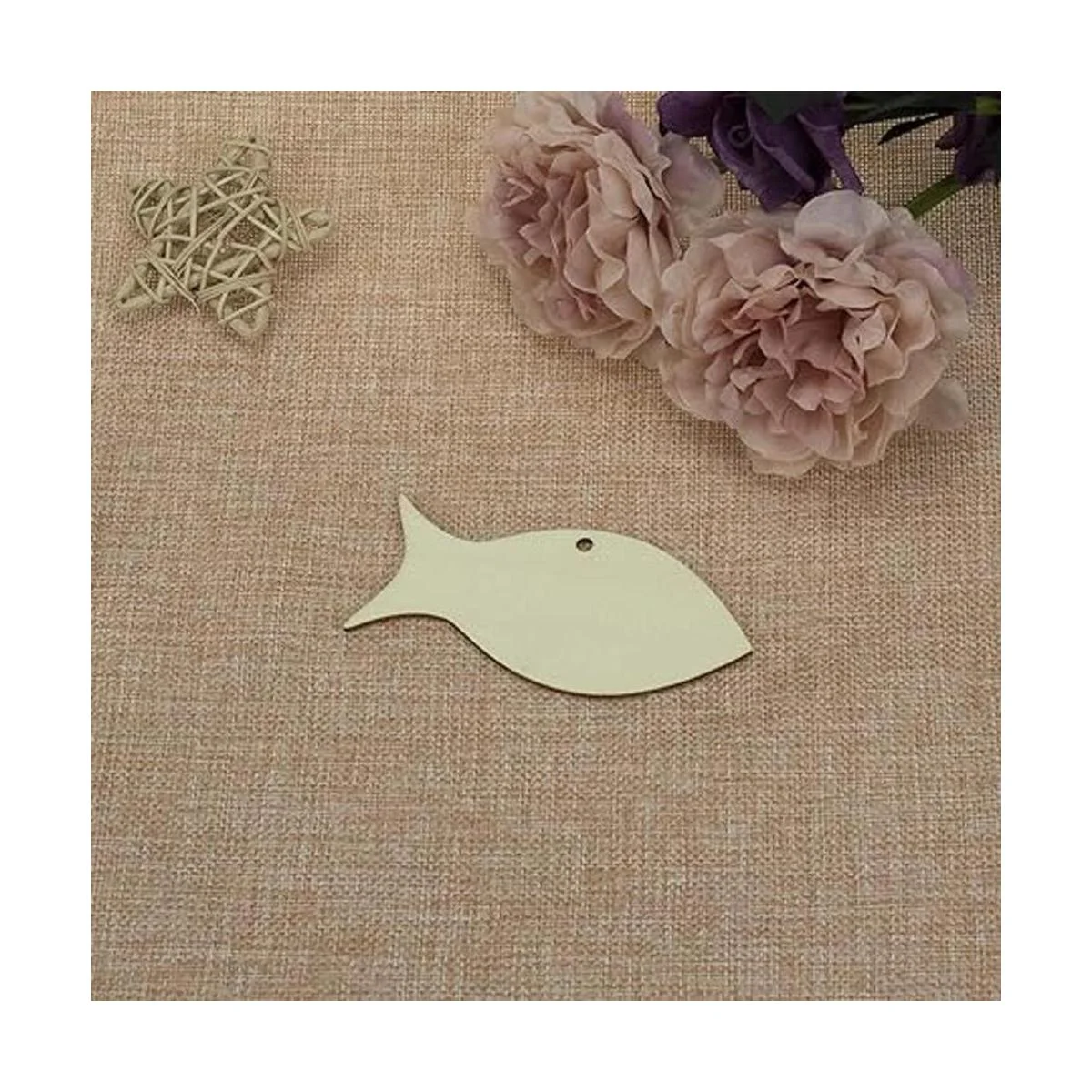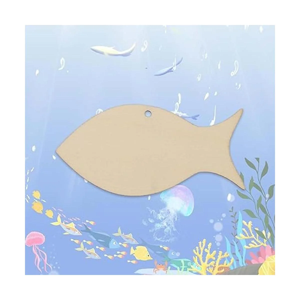 Características: diseño de madera en blanco con forma de pez para colgar, con un agujero y cuerda, se puede utilizar para colgar decoración. Perfecto para usar como etiquetas, tablero de fiesta, tablero de aula.