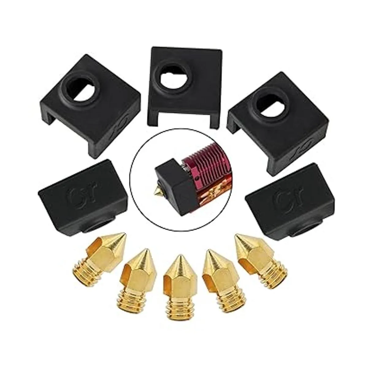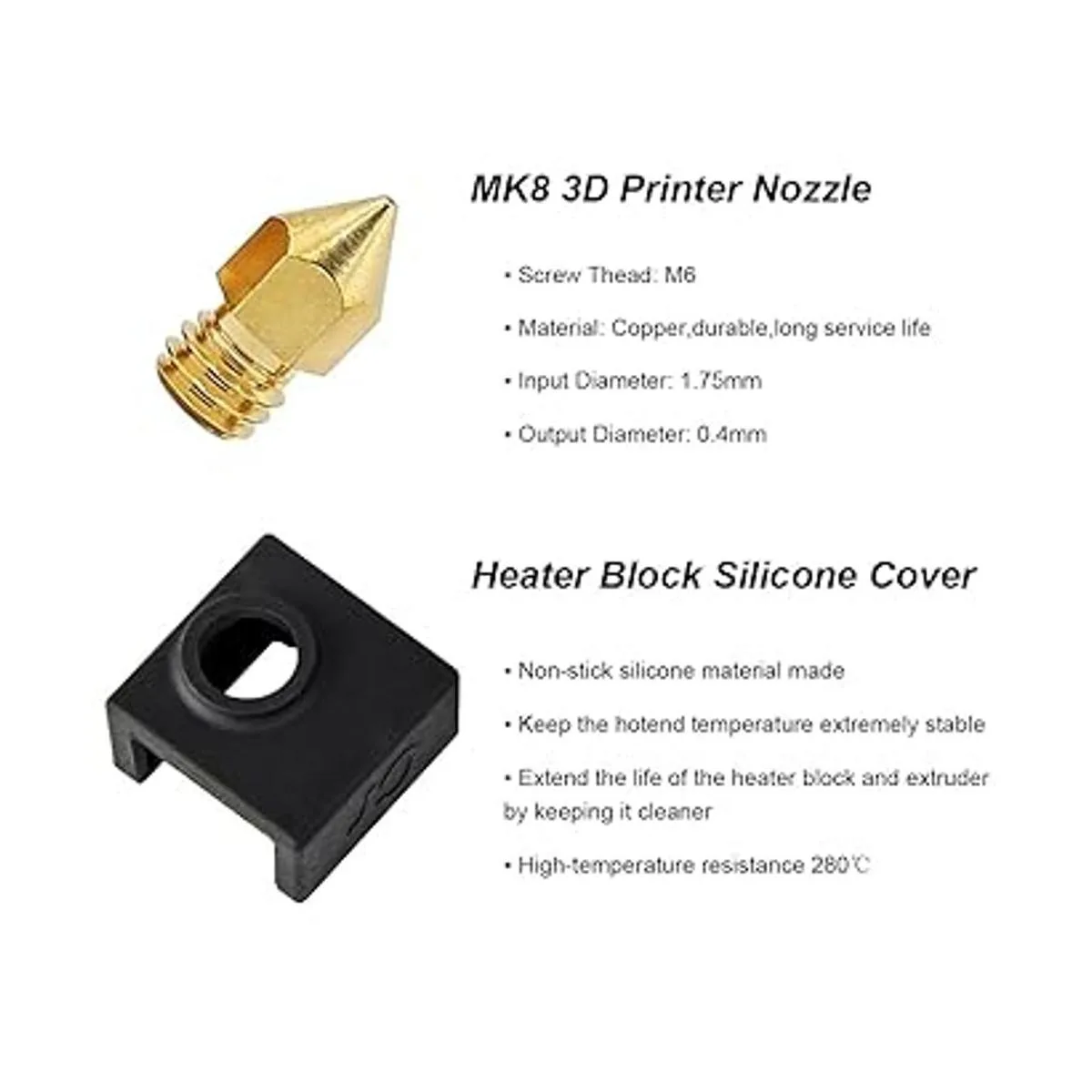 Creality 3D Piezas de la impresora Bloque de calentador mejorado de silicona y puntas de boquilla de latón para MK7MK8MK9 Extrusora Hotend Sock Aislamiento térmico para CR10, 10S, S4, S5 Anet A8 Ender 3 Pro V2