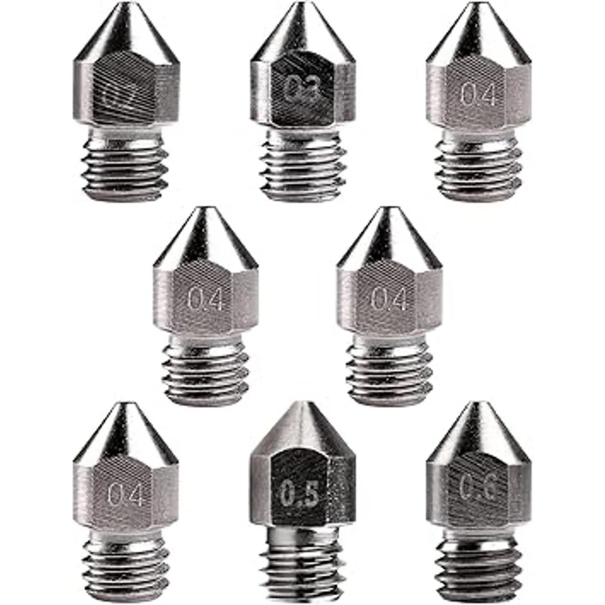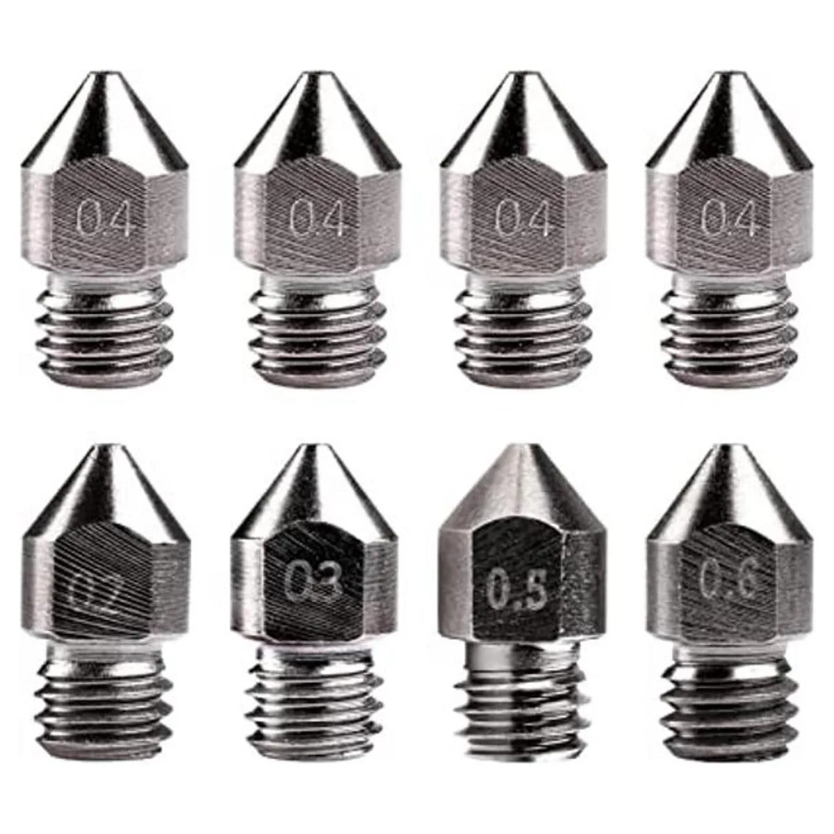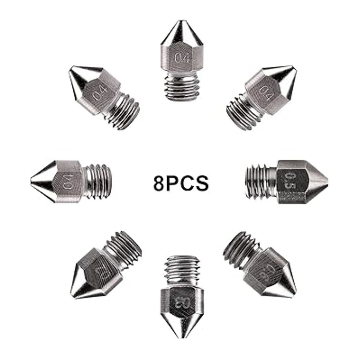 Creality 8 boquillas MK8 de acero endurecido para impresora 3D, boquillas extrusoras de tungsteno mejoradas de 0.008 in, 0.012 in, 0.016 in, 0.020 in, 0.024 in para Creality Ender 3 Ender 3 V2 Ender 3 Pro CR10