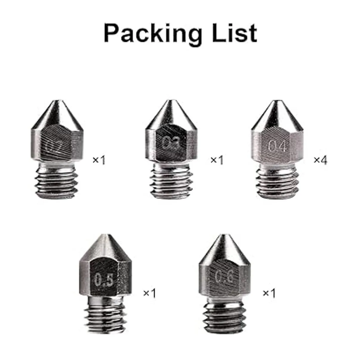 Piezas incluidas: viene con 8 boquillas MK8 negras de diferentes tamaños, el tamaño es de 0.008 in/0.012 in/0.016 in/0.020 in/0.024 in, cantidad suficiente y tamaño para facilitar tu reemplazo oportuno, logrando impresión de calidad. Cualquier pregunta sobre el producto, no dudes en ponerte en contacto con nosotros a través del mensaje de , te proporcionaremos consejos técnicos profesionales y soluciones para ti.