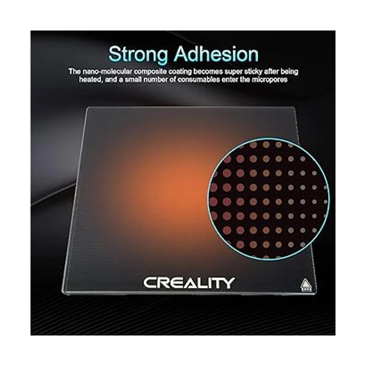 Excelente planitud: la placa de construcción mejorada de 3 años con el logotipo de CREALITY más pequeño proporciona una superficie de construcción más plana y suave que la alfombrilla magnética o la pegatina pei, asegurando una alta planitud para la parte inferior del molde durante la impresión 3D.