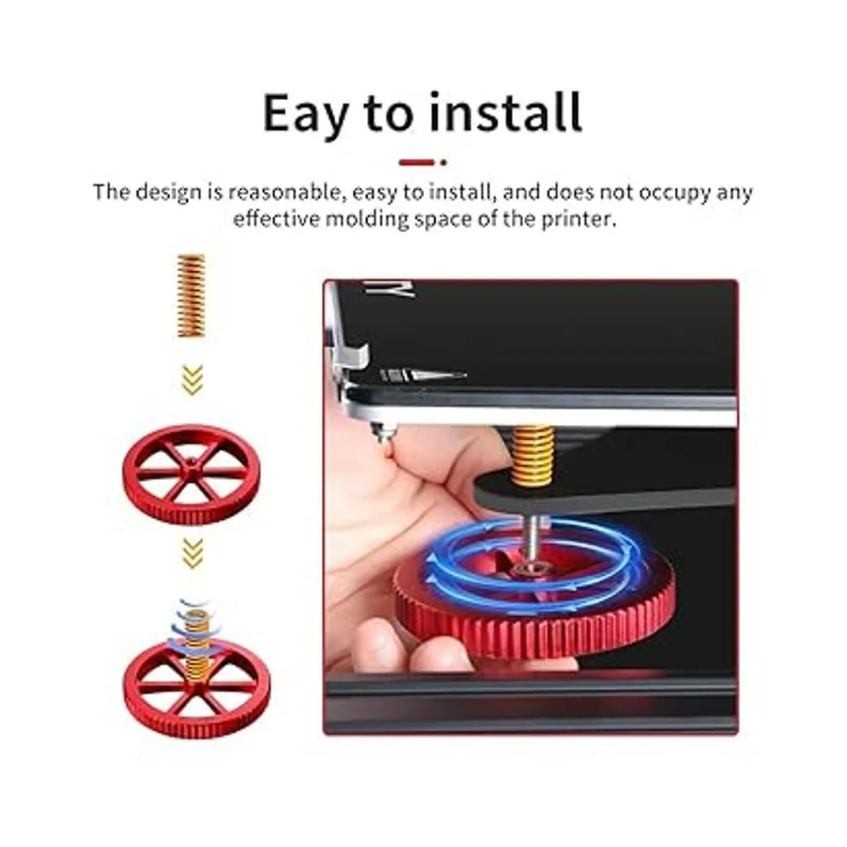 Fácil de usar: es muy fácil de usar, solo para quitar el viejo y poner nuestras tuercas y resortes. El par de estas tuercas es grande, por lo que es más fácil afinar la cama caliente.