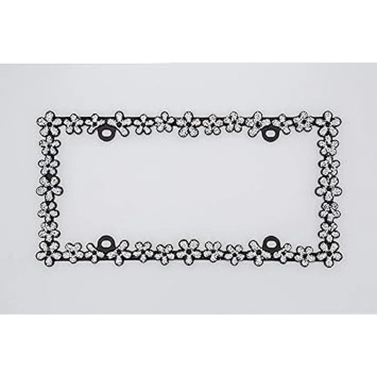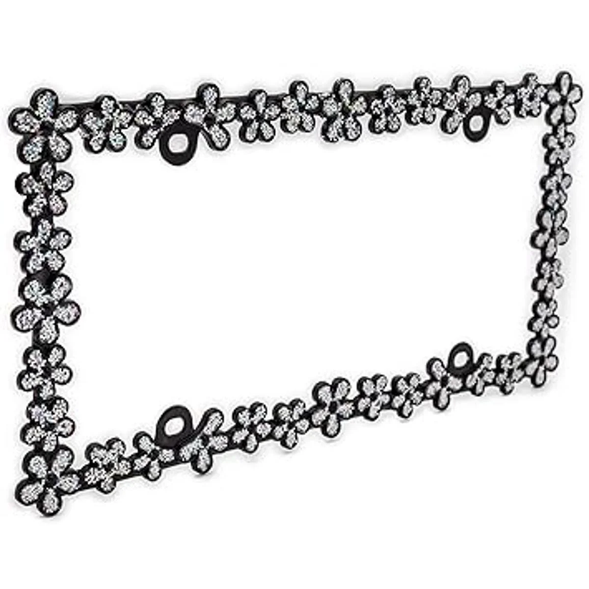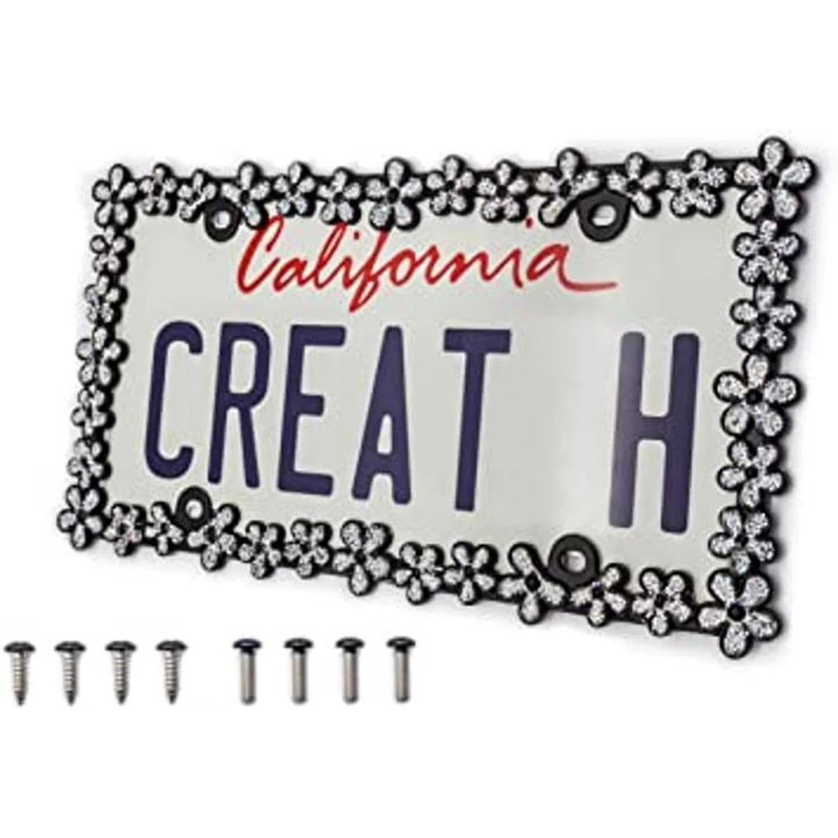 creathome Marco para placa de circulación con diseño de margaritas Brillante y 3D Aleación de zinc puro Soporte para placa perfecto de metal