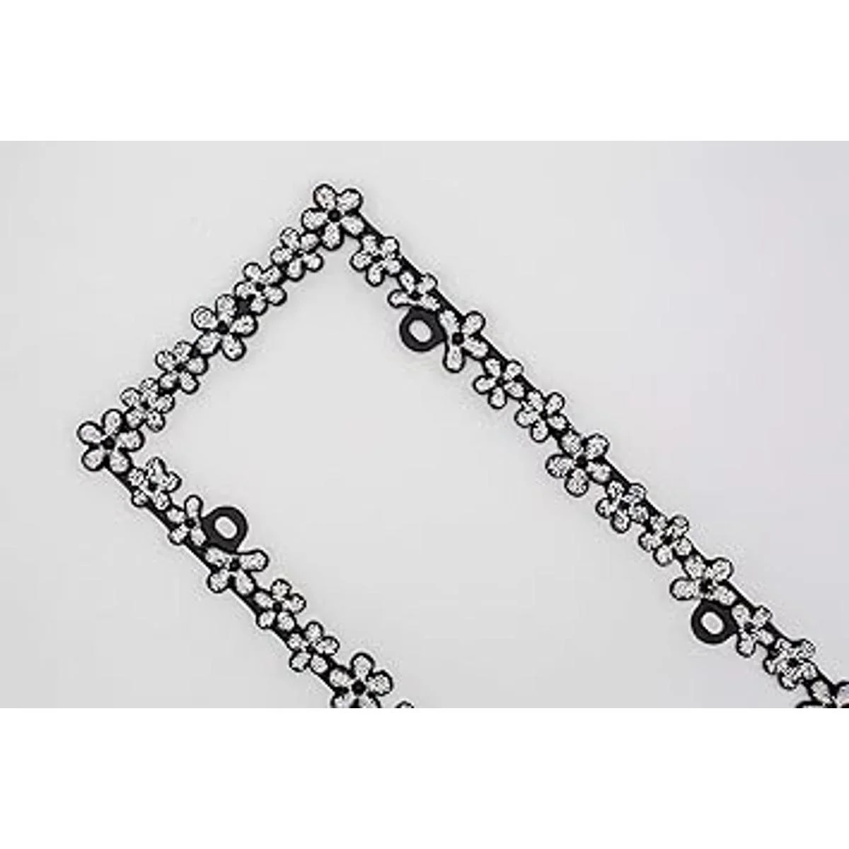 Marcos para matrícula de color negro mate con purpurina plateada. Corona de margaritas alrededor de todo el plato. La purpurina brillante hace que la margarita sea fresca y fresca, natural, llena de vitalidad. Hace que tu coche sea dulce y disfruta del sol de verano.
