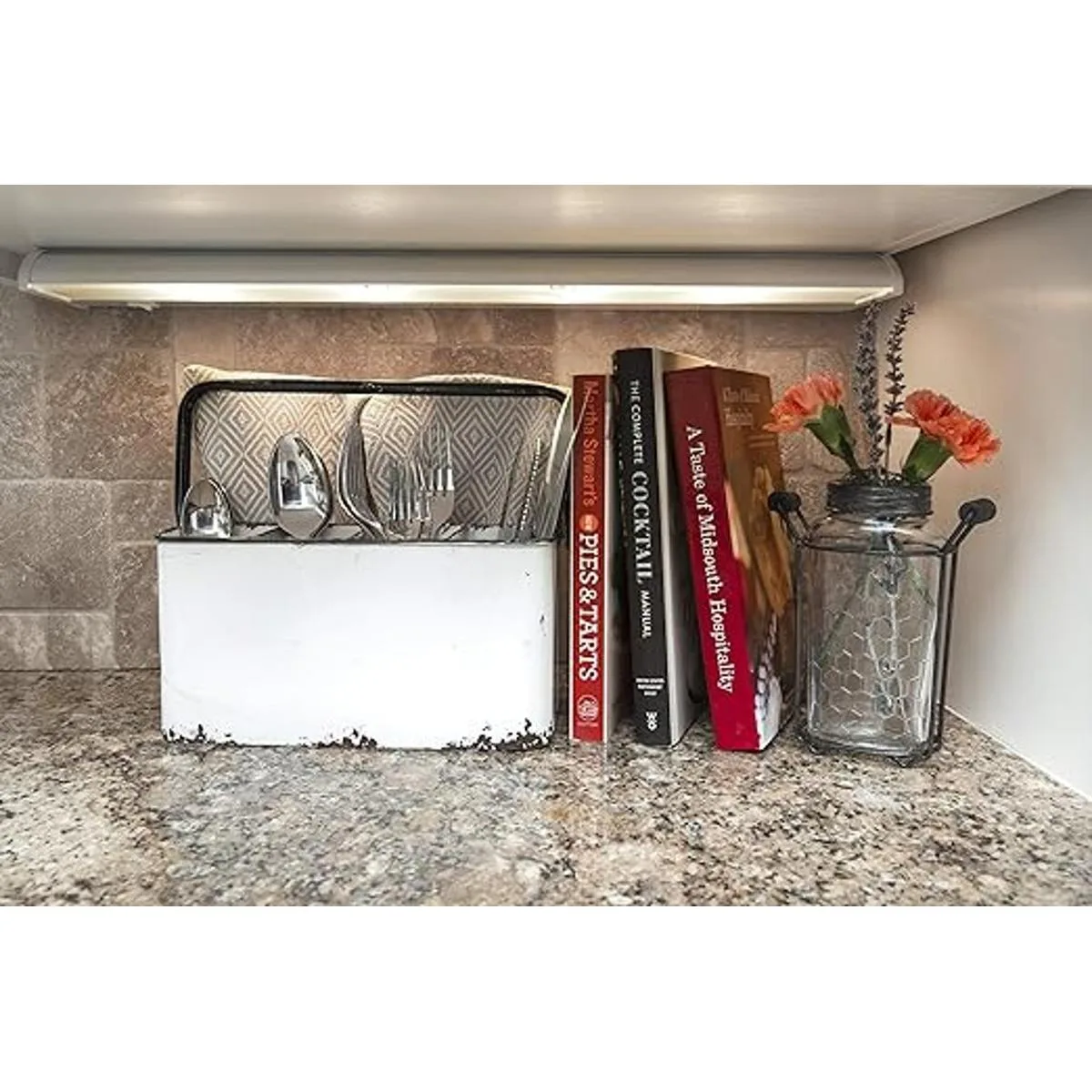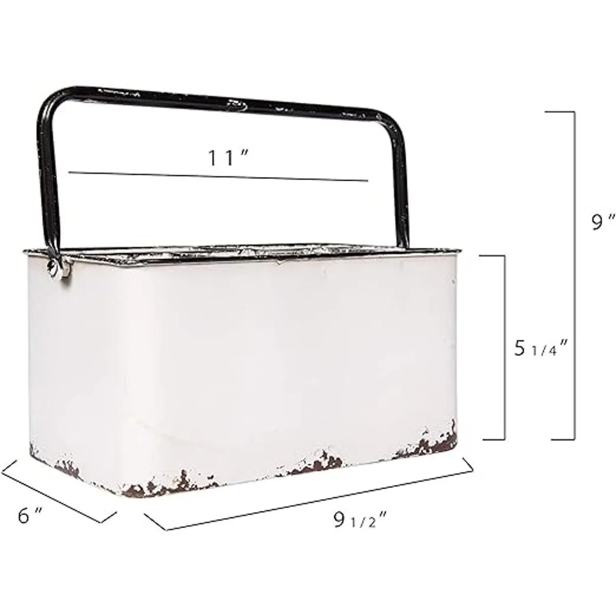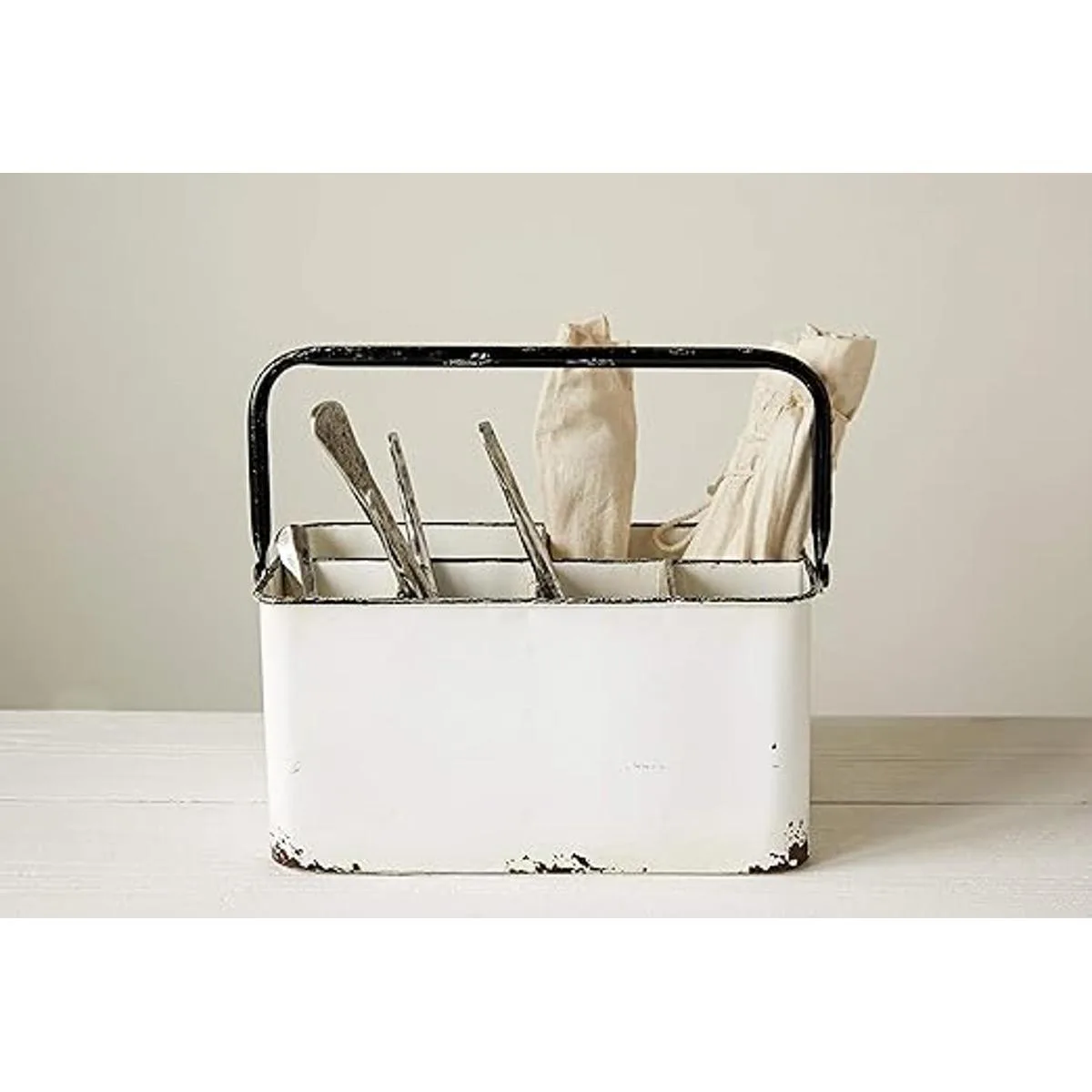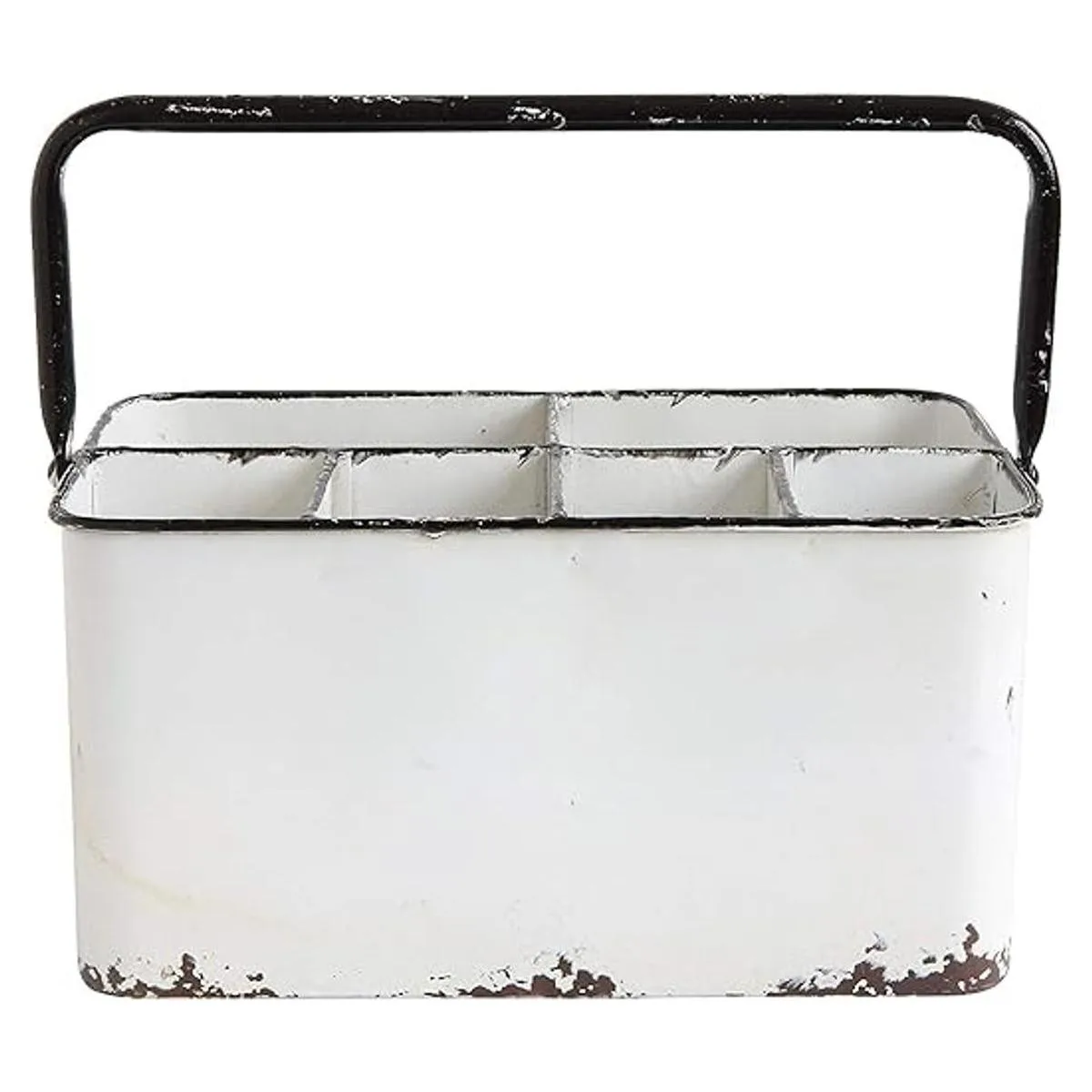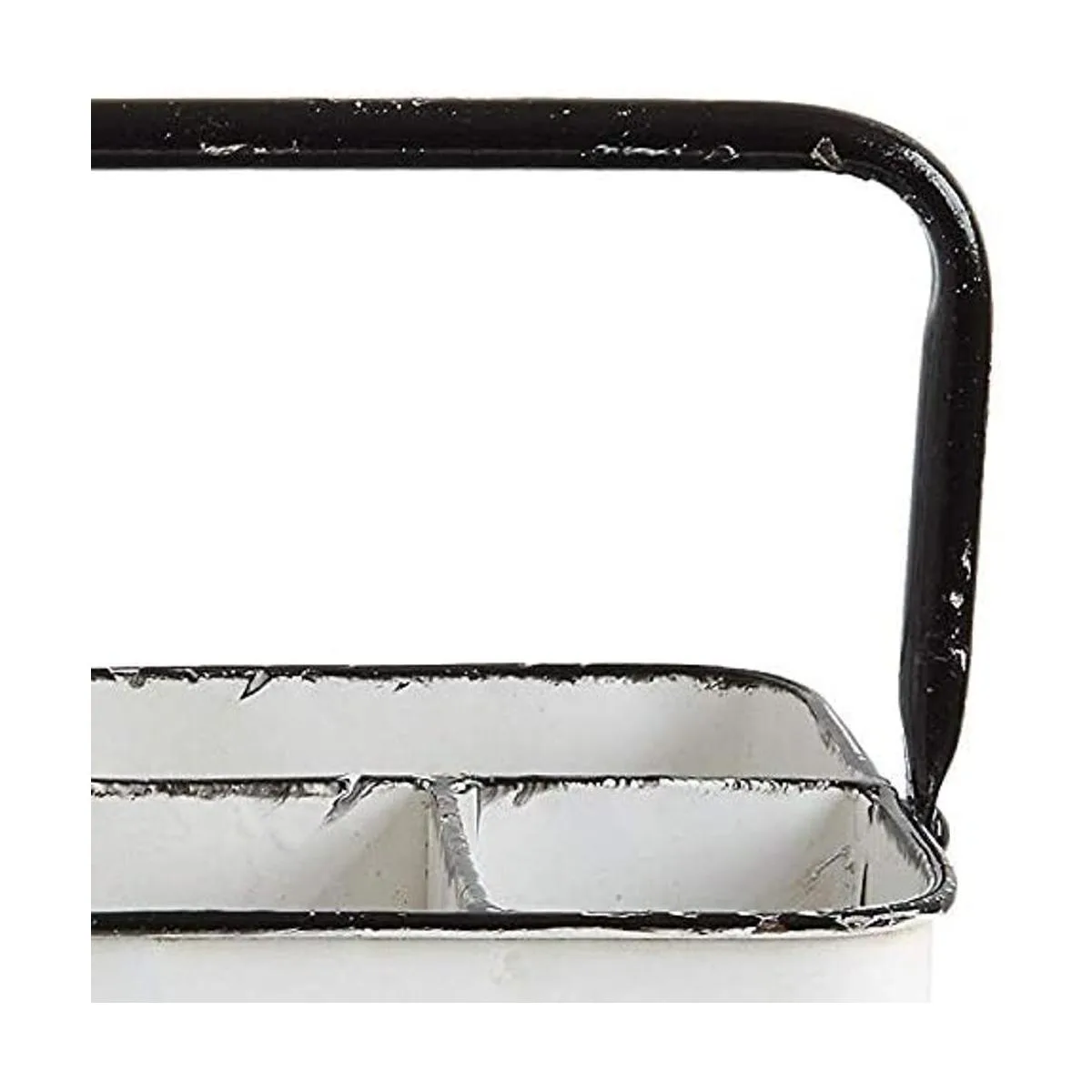 Creative CoOp Acabado esmaltado de metal envejecido con borde negro y 6 compartimentos, 11 pulgadas de largo x 614 pulgadas de ancho x 9 pulgadas de alto, blanco