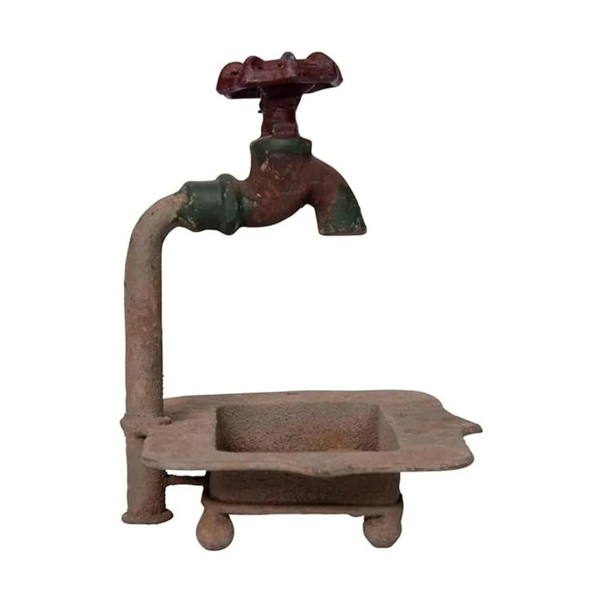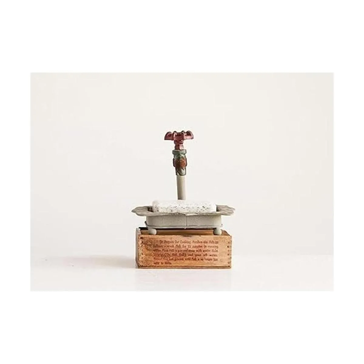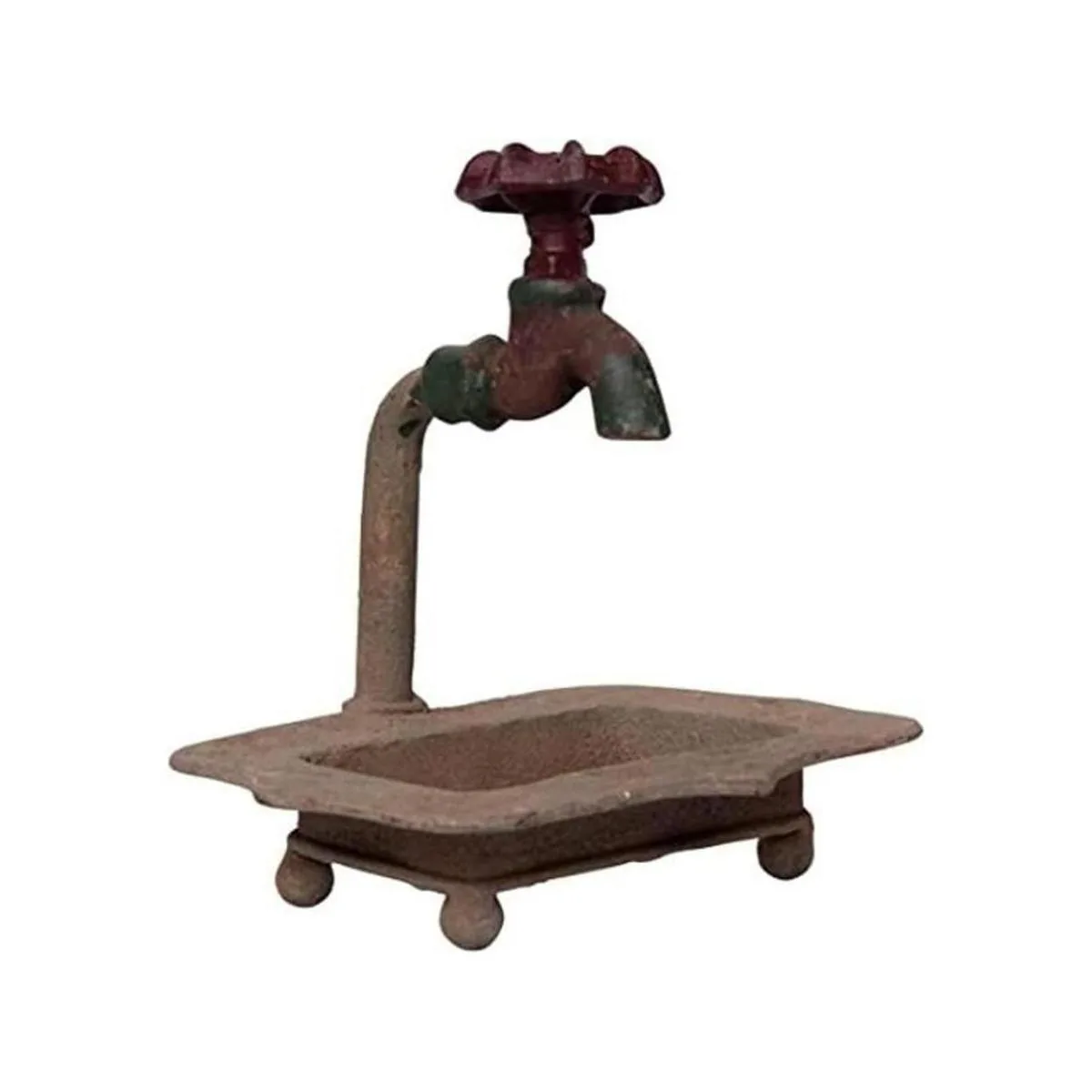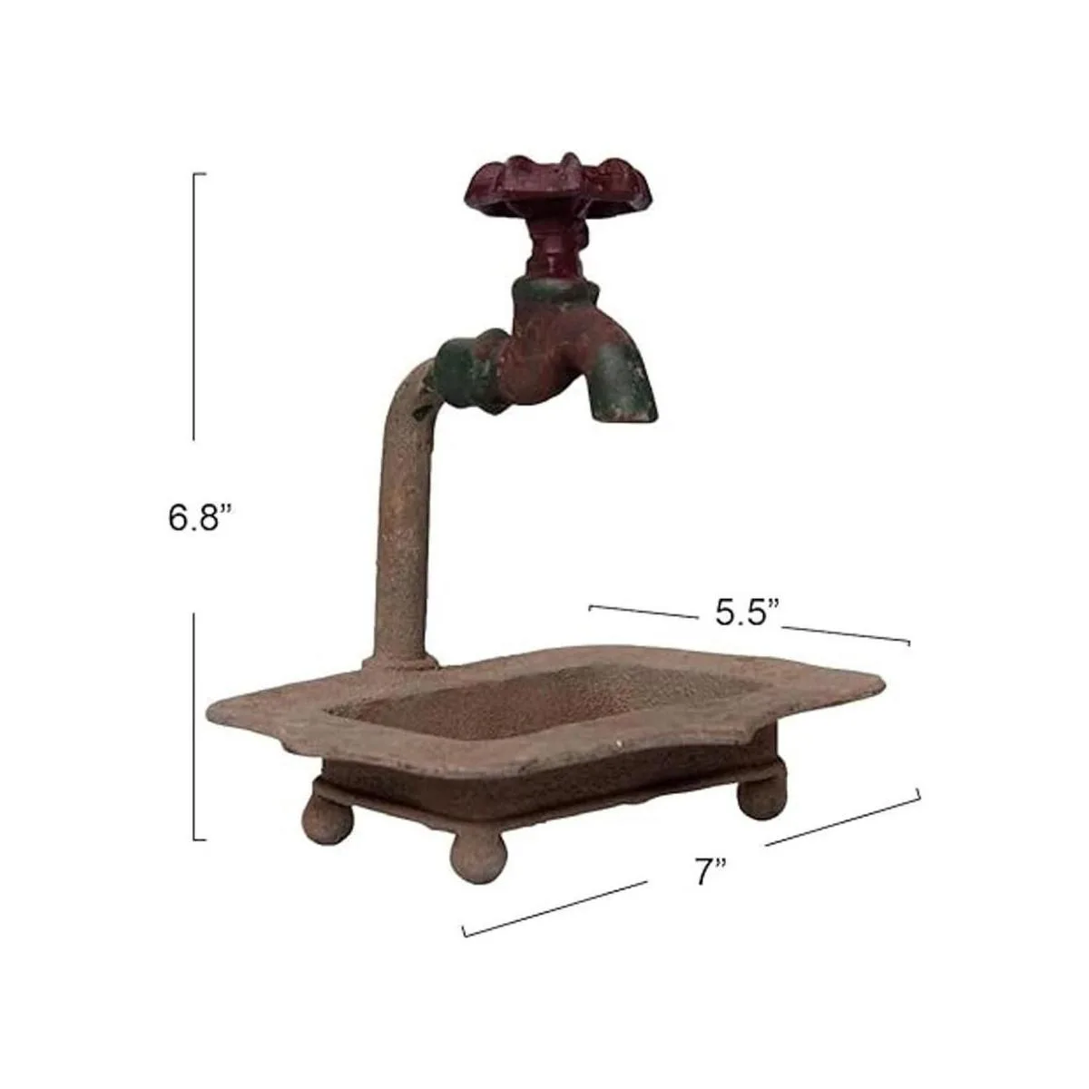 Creative CoOp Jabonera de metal rústico DE1895 con grifo