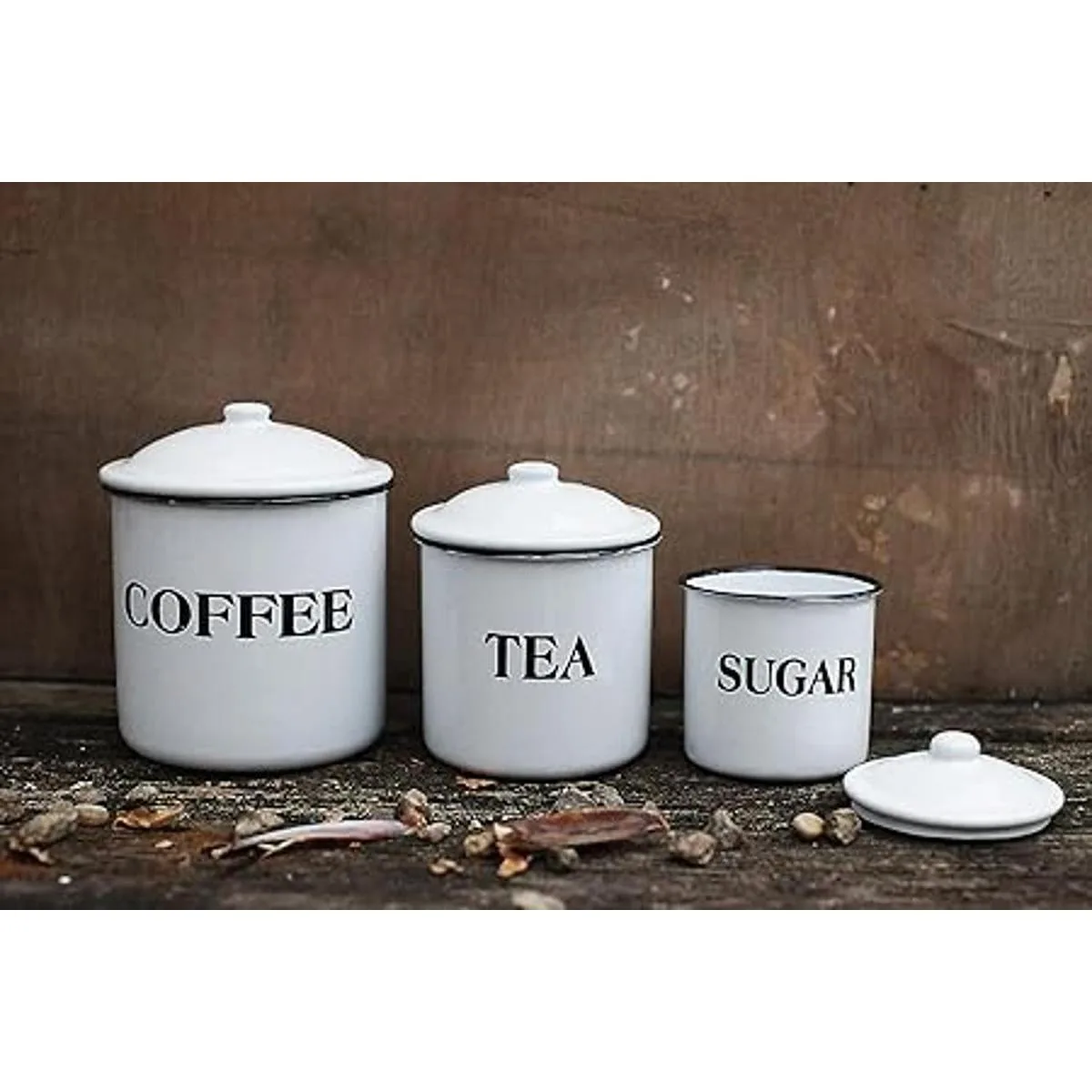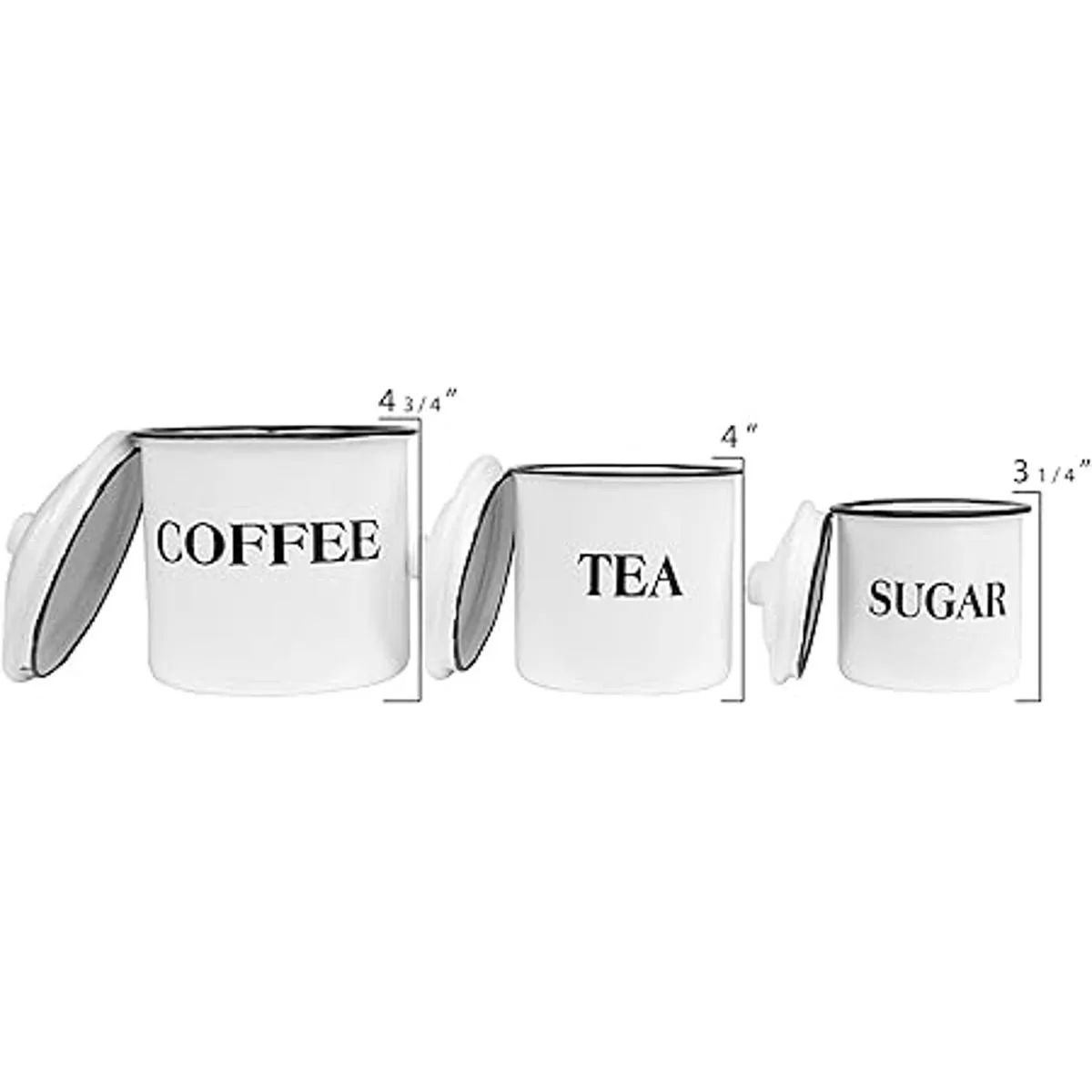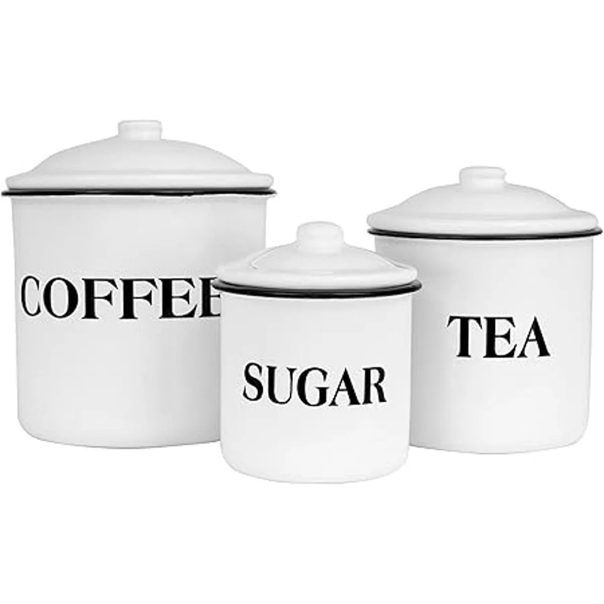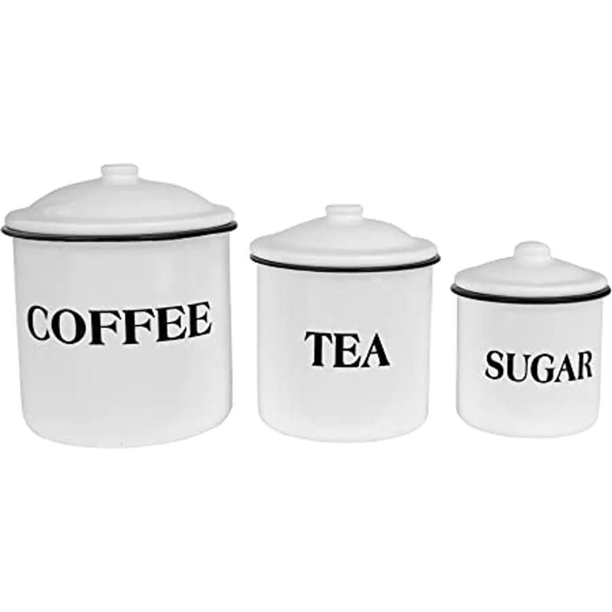 Creative Coop juego de contenedores para café, té, azúcar con tapas de metal esmaltado, multicolor