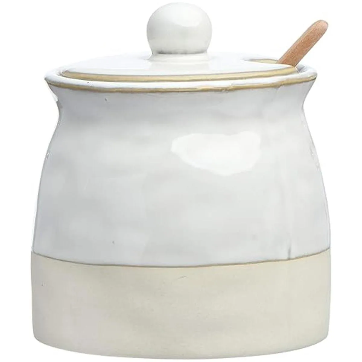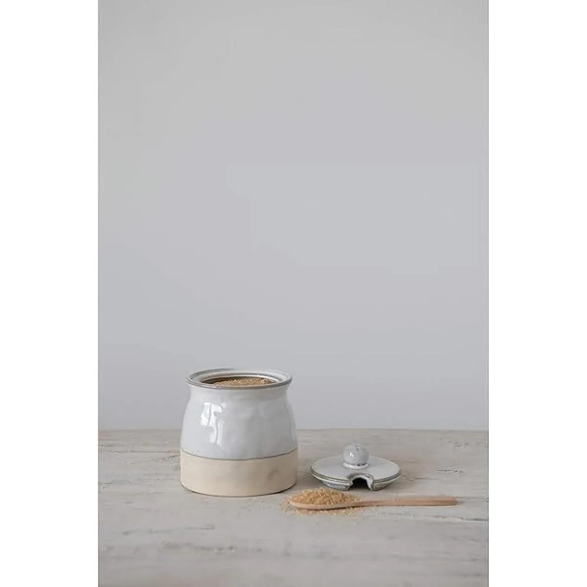 Creative CoOp Olla para tapa de azúcar, color blanco