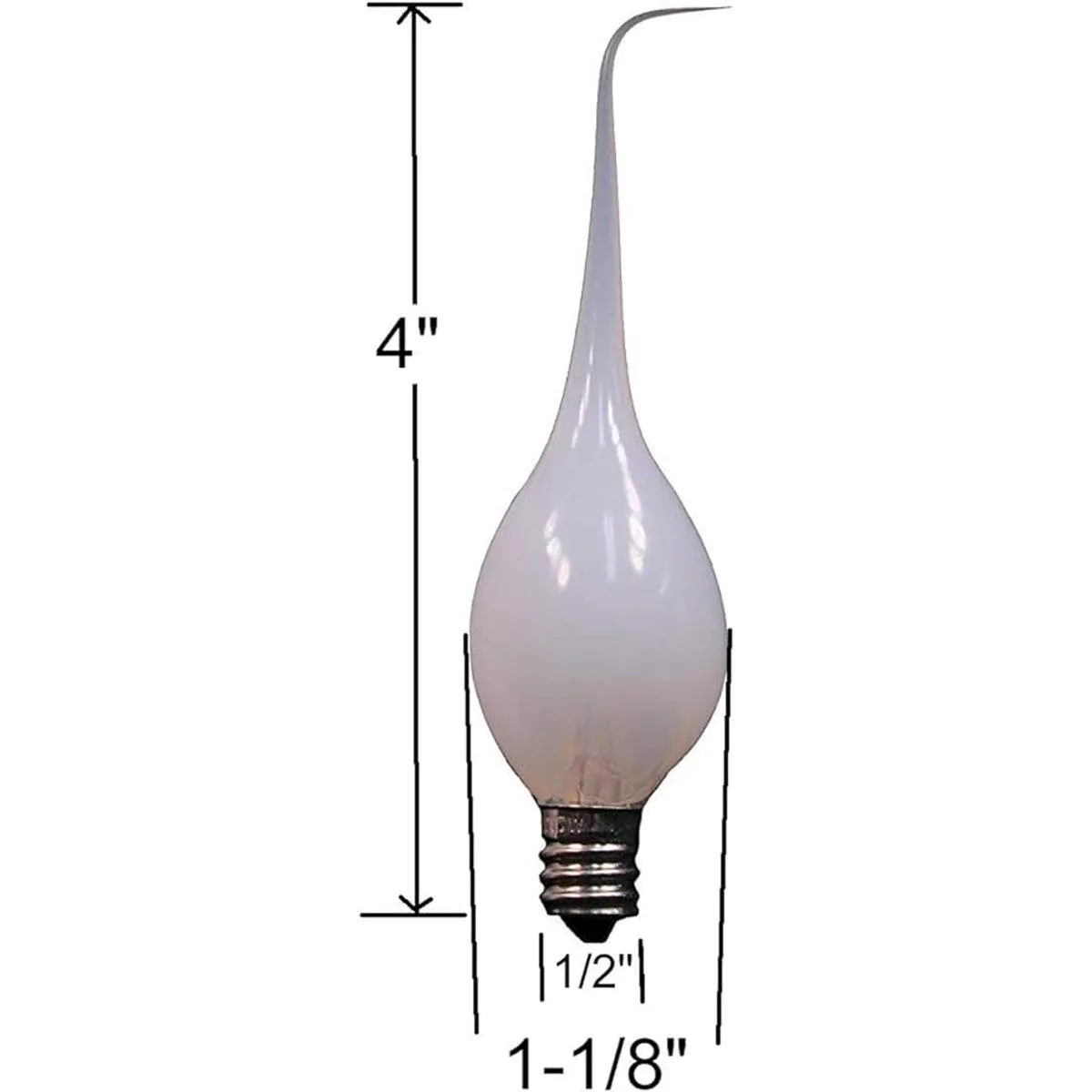 Las bombillas son claras, bombillas de base de candelabro de 5 W de combustión constante sumergidas en silicona.