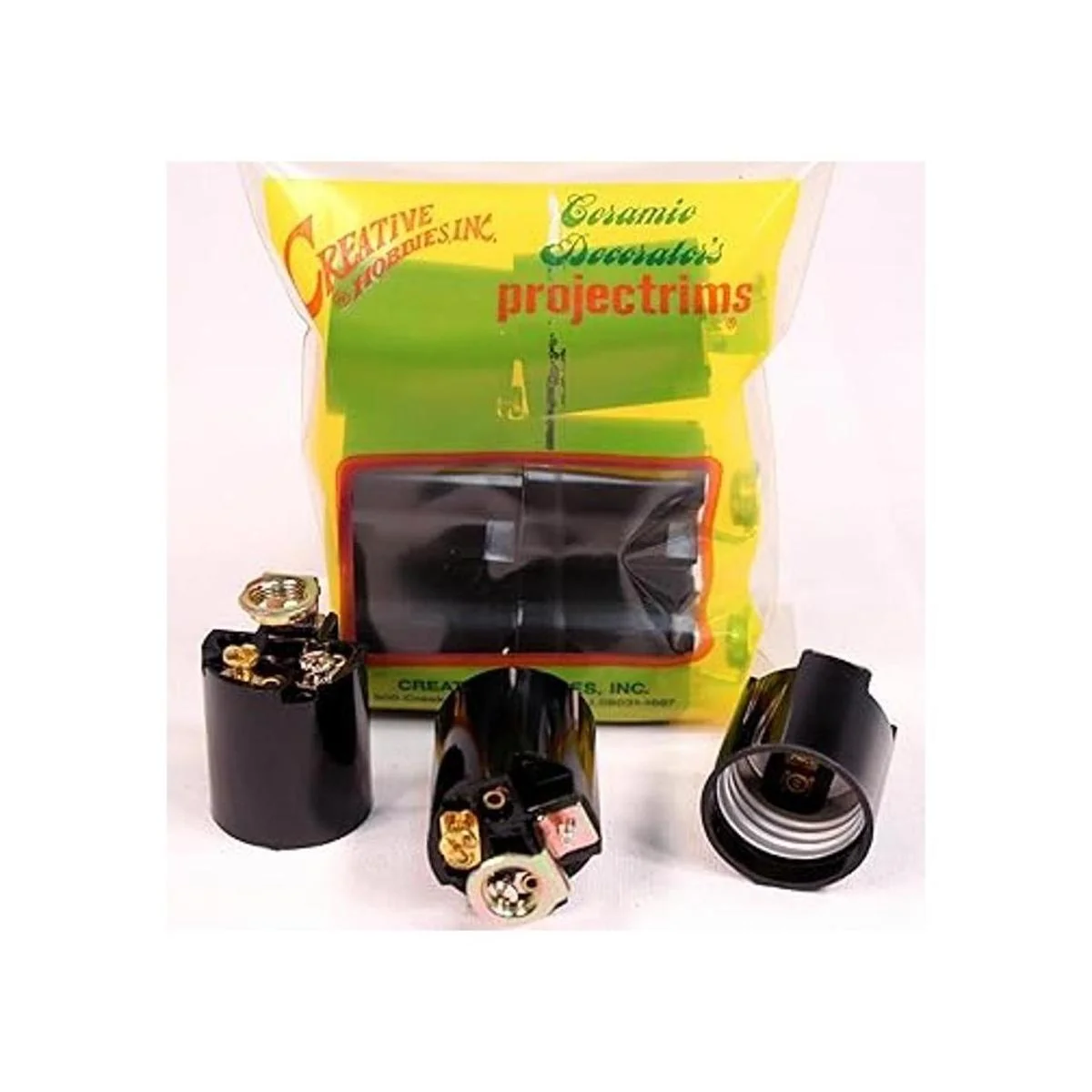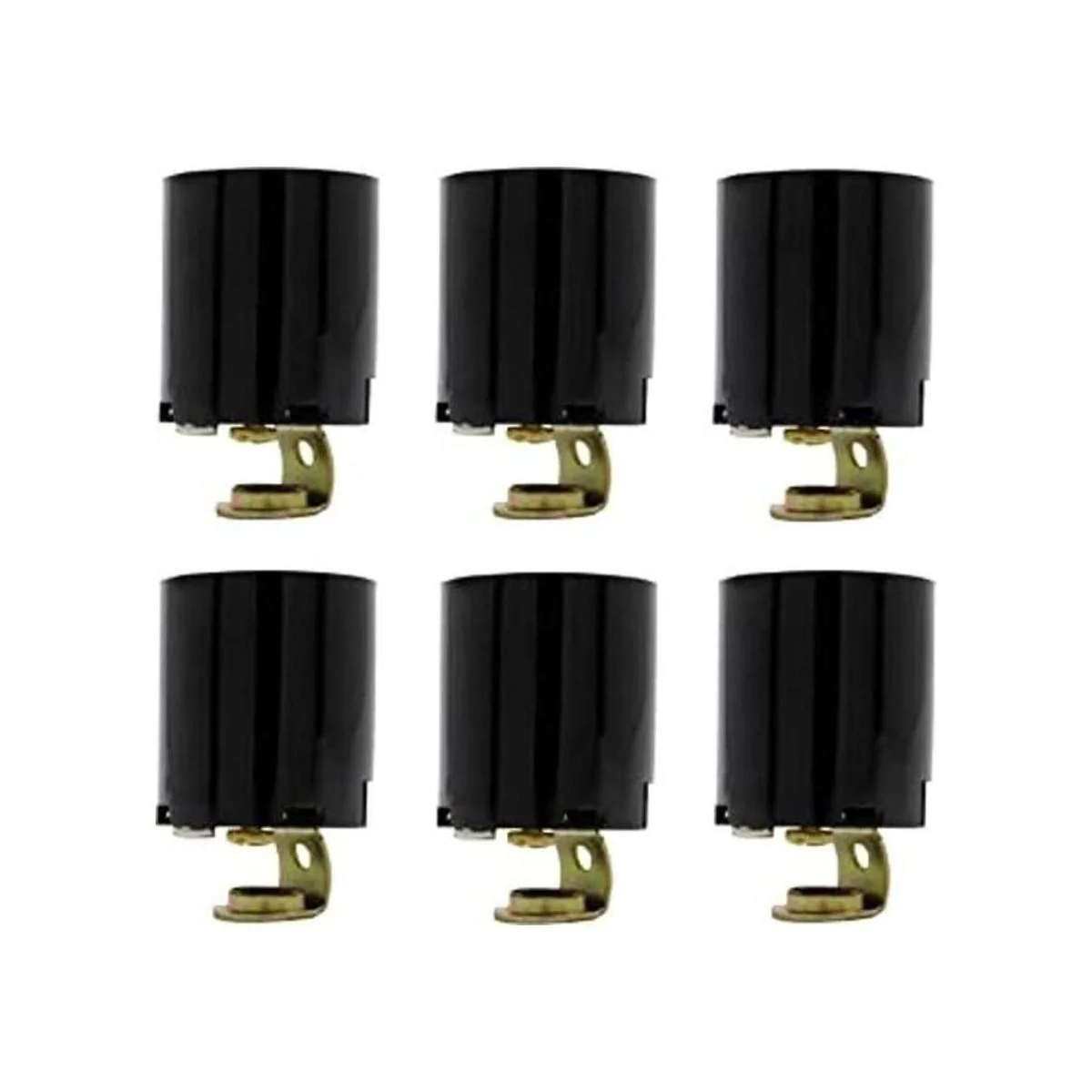 Creative Hobbies ELT5561A Phenolic Bakelite Medium Base E26 Fixture Socket, for Incandescent Bulbs, OnePiece Keyless with Hickey, Black, Pack of 6