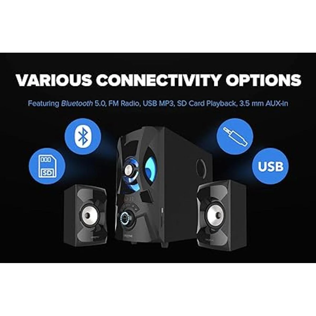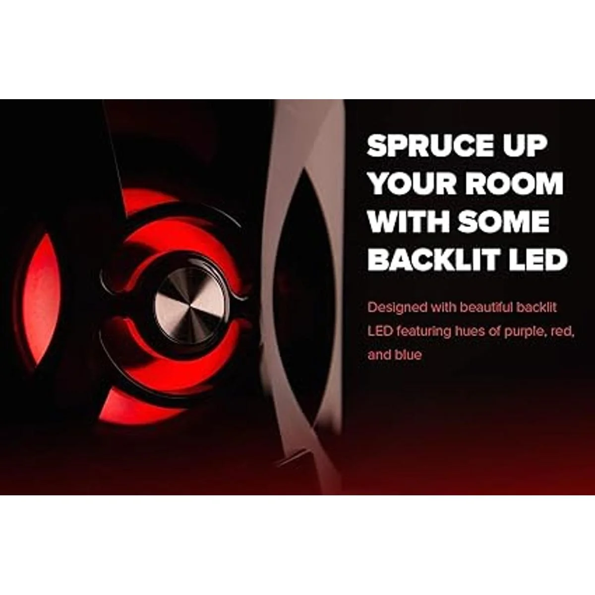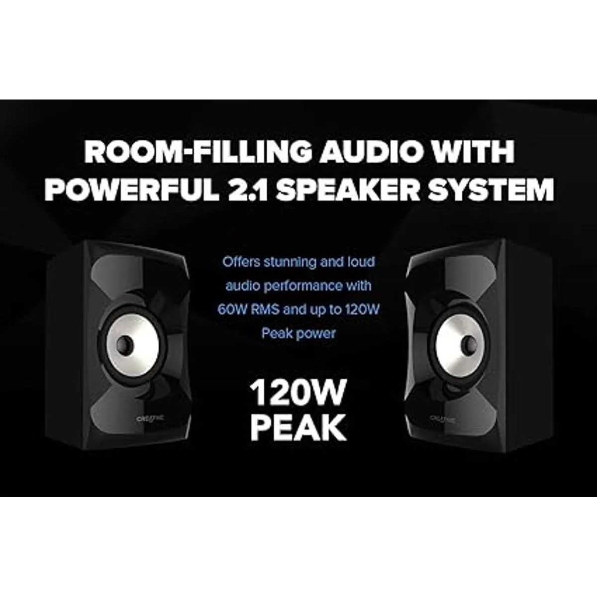 Potente sistema de altavoces 2.1 con controladores de campo lejano: ofrece un rendimiento de audio impresionante y fuerte con 60 W RMS y hasta 120 W de potencia máxima, y equipado con controladores internos de campo lejano sintonizados para ofrecer audio lleno de habitación para una experiencia de audio inmersiva