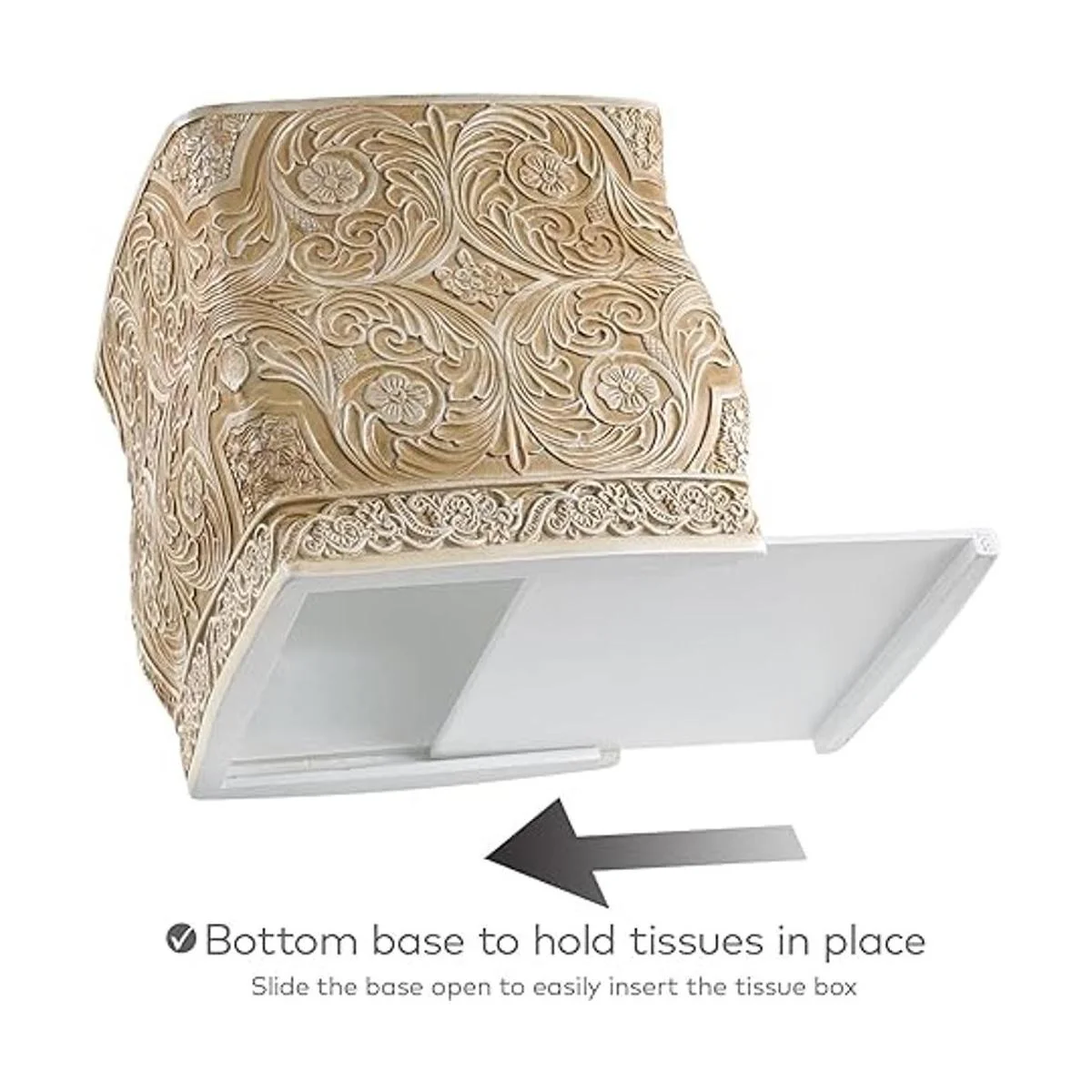 Soporte decorativo para caja de pañuelos La funda se adapta a la mayoría de cajas de pañuelos cuadradas estándar; cuenta con un elegante patrón de desplazamiento italiano y un diseño floral en espiral