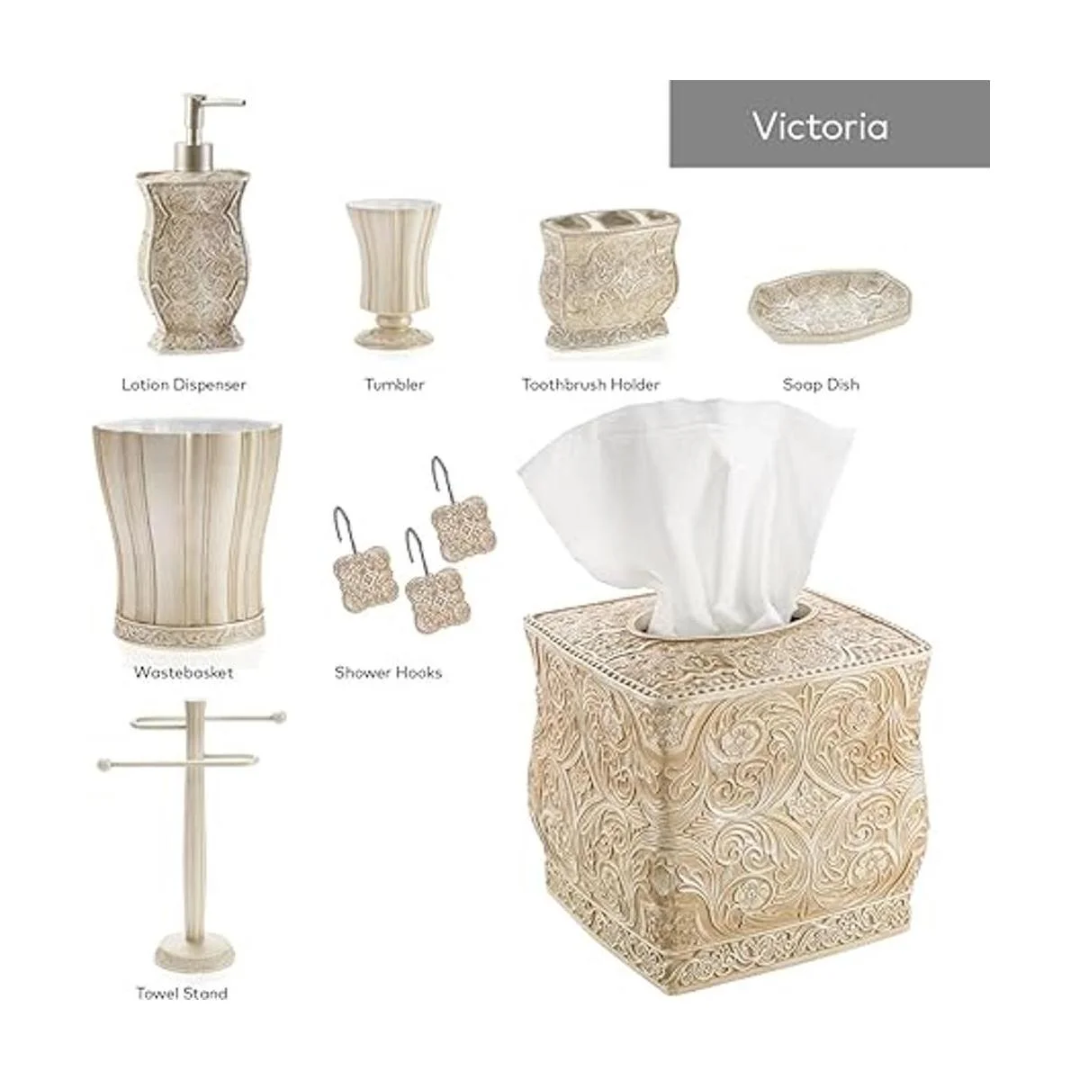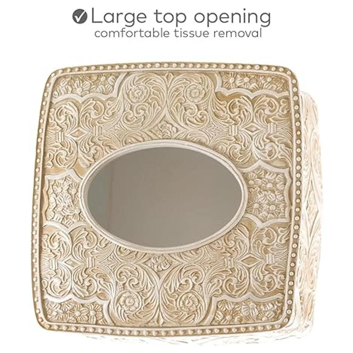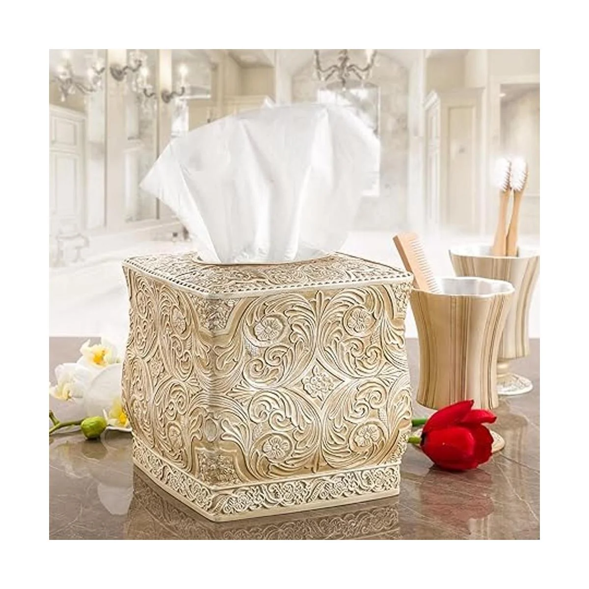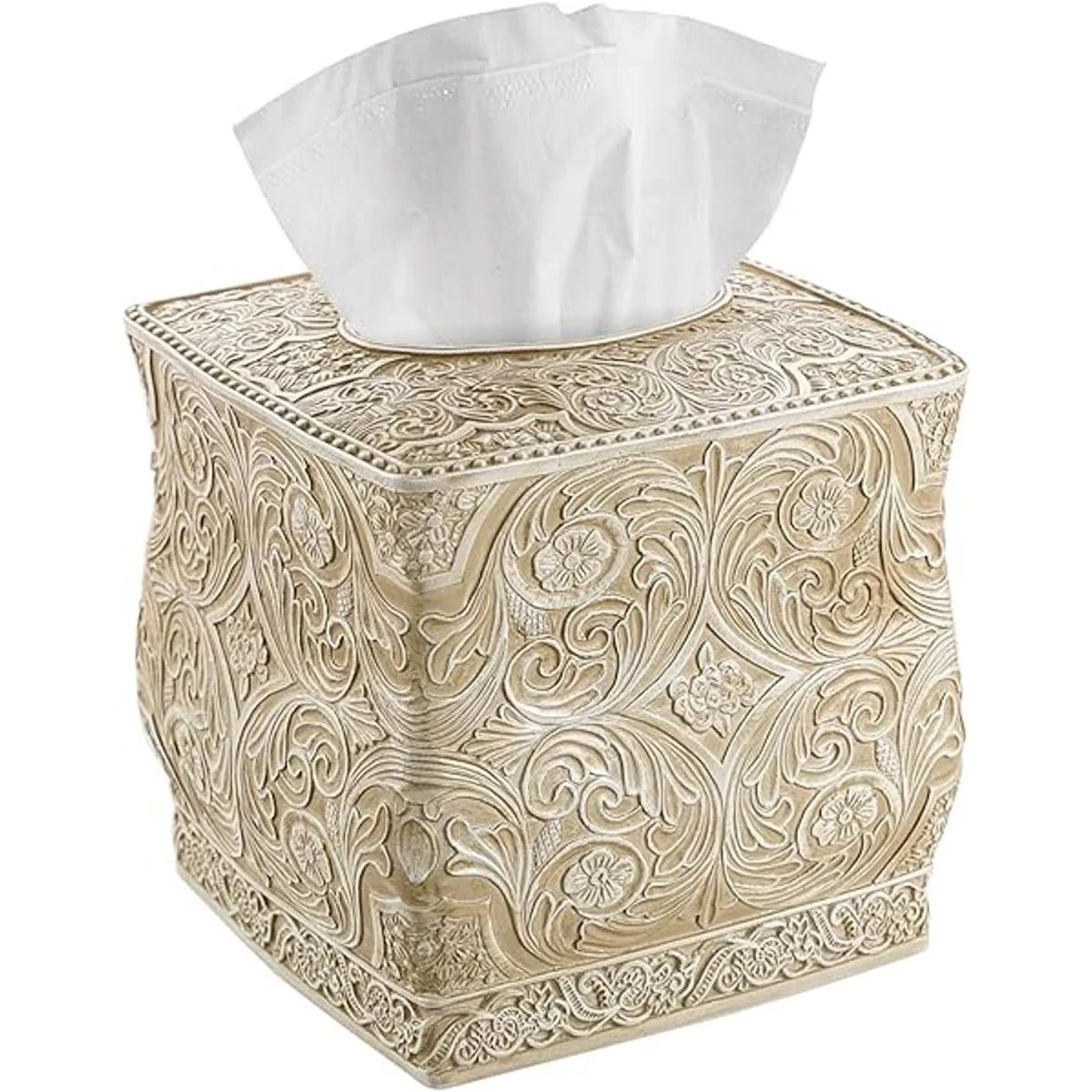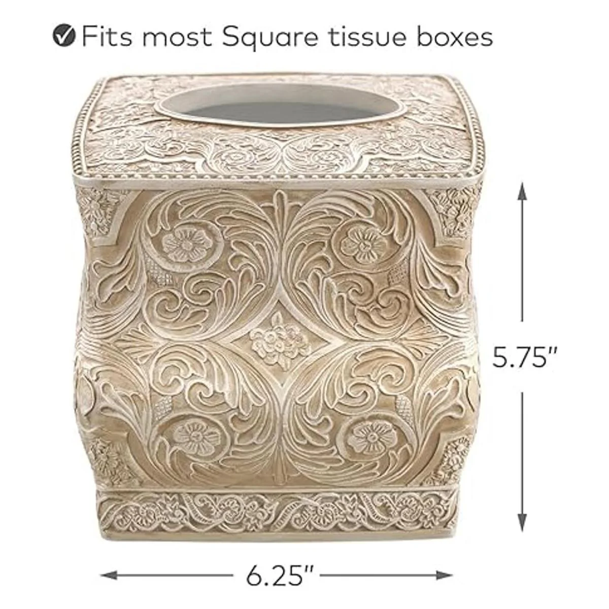 Creative Scents Cubierta cuadrada de la caja de pañuelos Soporte decorativo de baño con acabado en la hermosa colección Victoria para decoración de baño elegante y bonita Beige