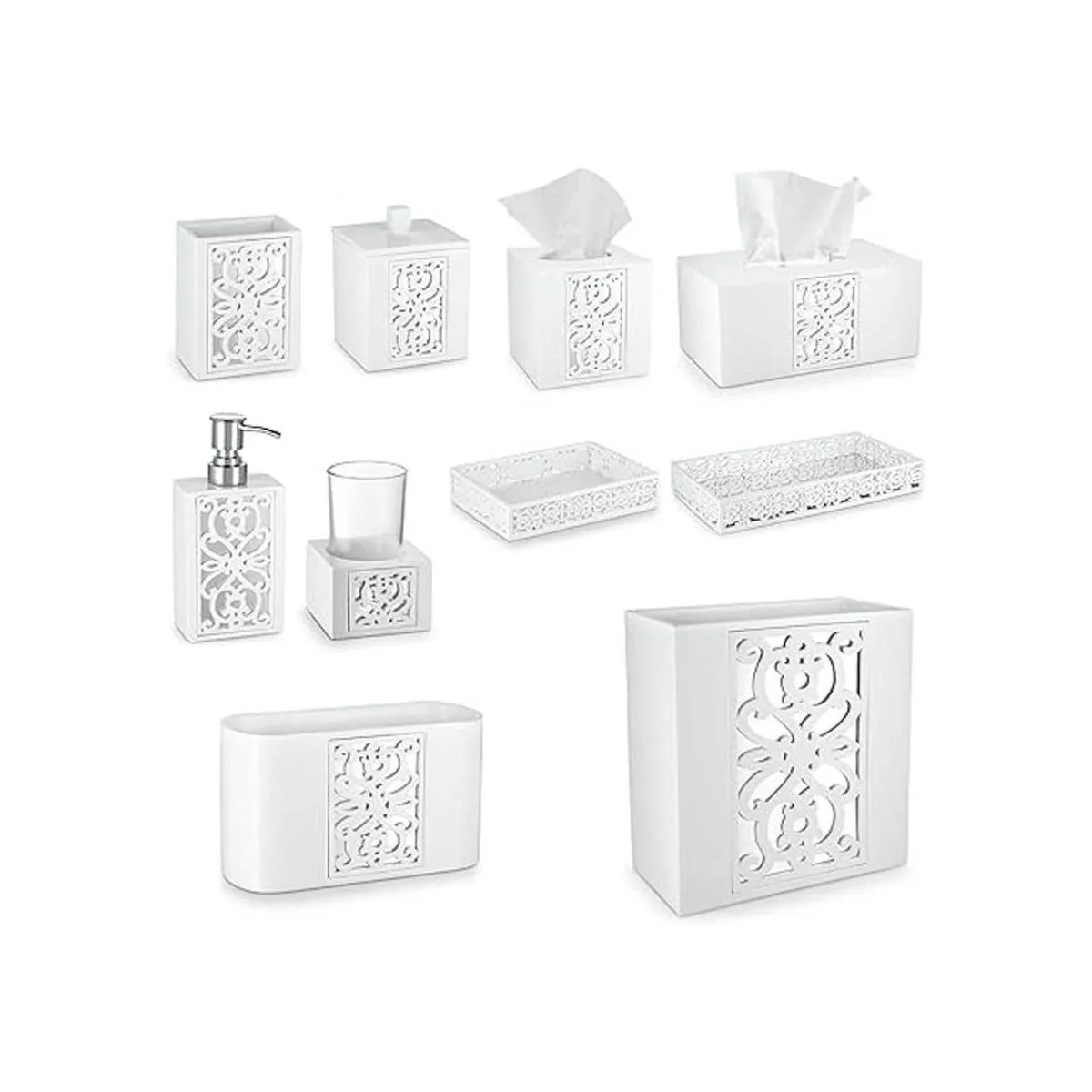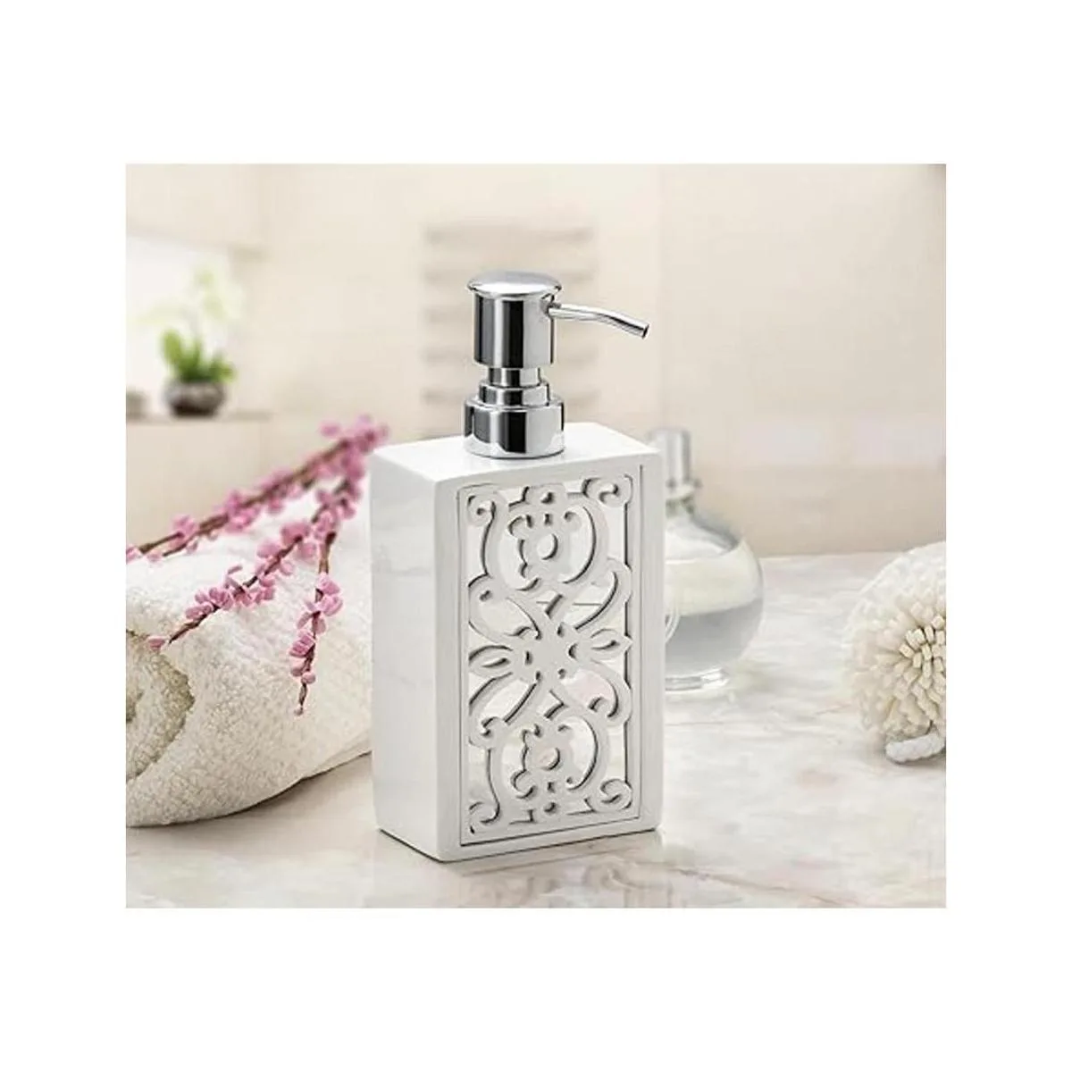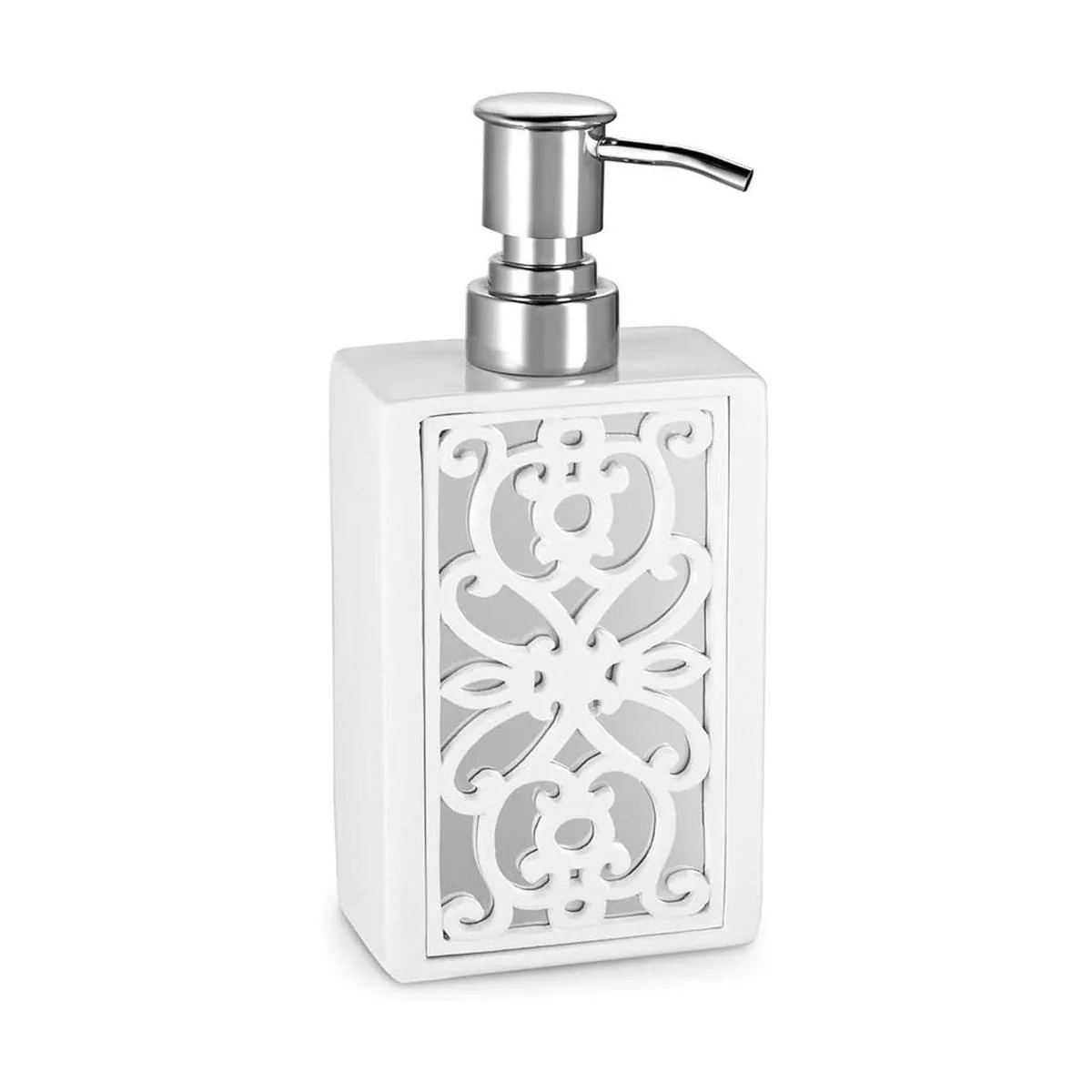 Creative Scents Dispensador de jabón blanco para baño, dispensador de loción de manos para encimera, dispensador de jabón de baño con bomba de metal duradera, diseño moderno y contemporáneo, estilo Janette