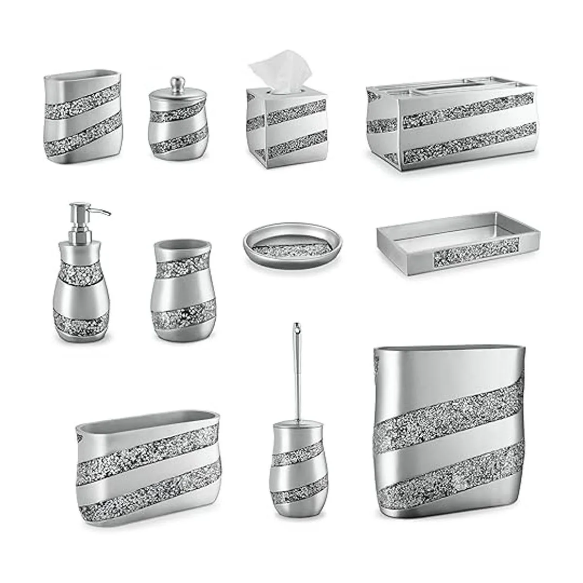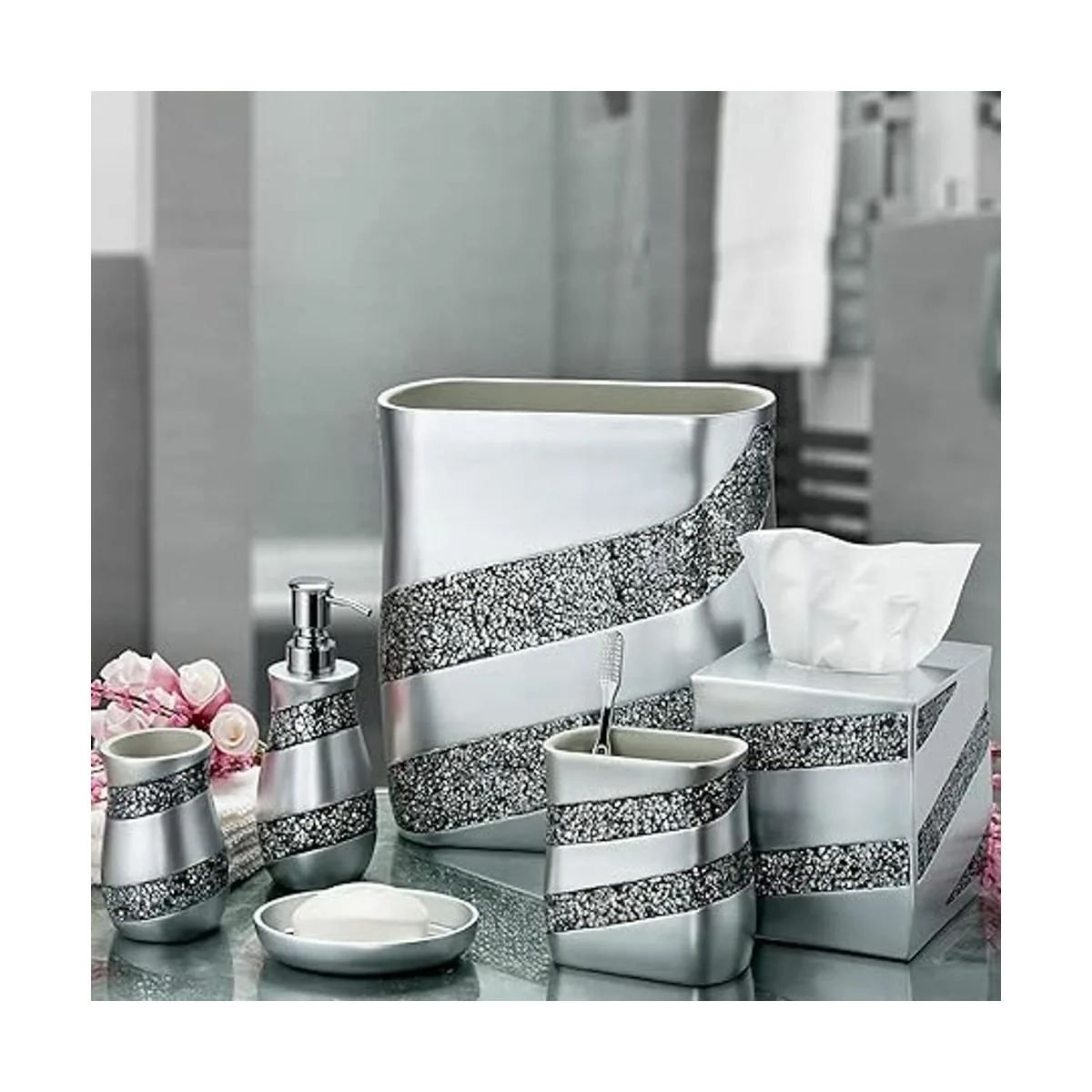 Idea de regalo única: combina el moderno dispensador de jabón con otros artículos de la colección de accesorios de baño de mosaico espejo para crear un juego de regalo verdaderamente memorable que destaca hermosamente.