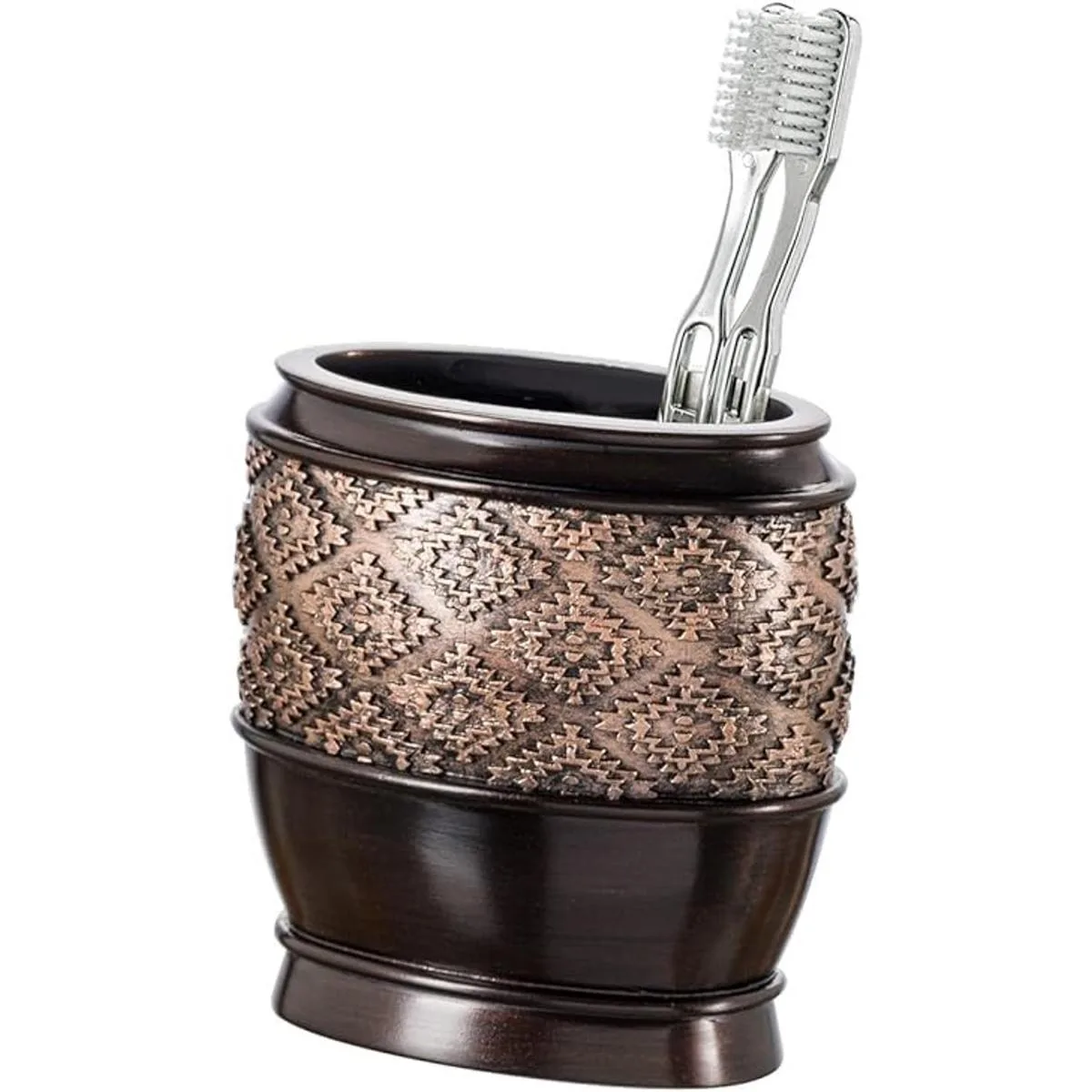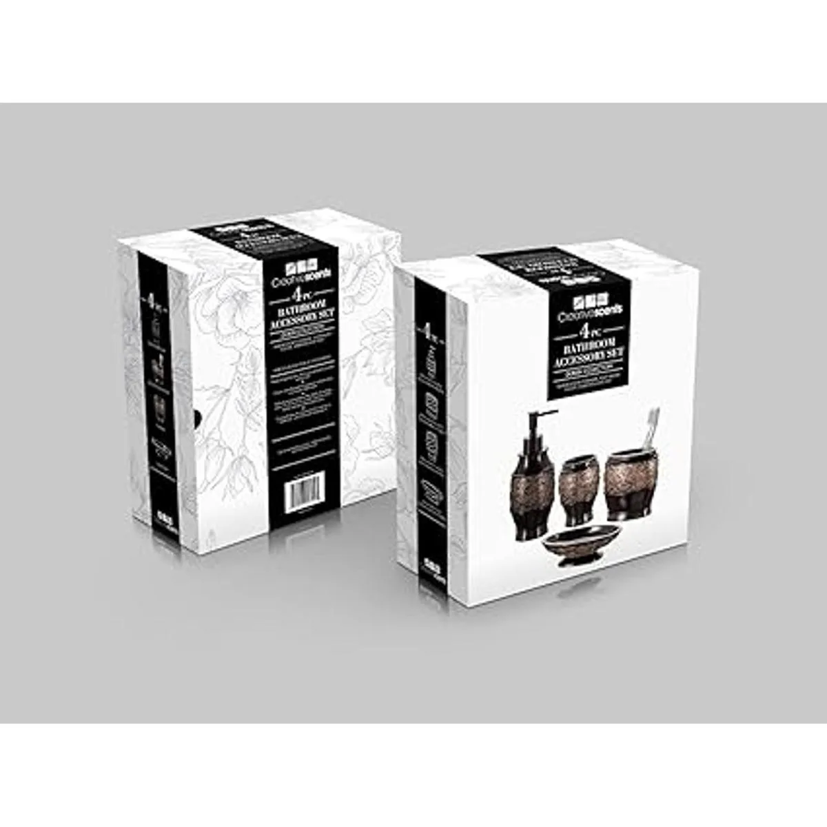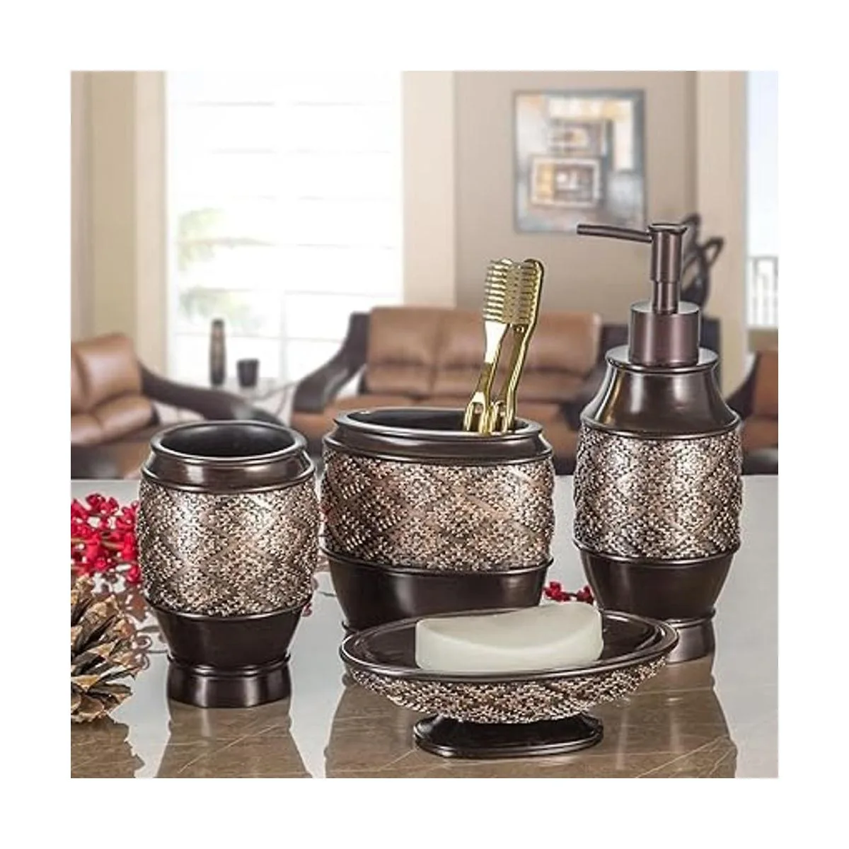 Creative Scents Dublin Juego de accesorios de baño, accesorios de decoración de baño, incluye dispensador de jabón, jabonera de barra, vaso y soporte para cepillo de dientes para tu encimera de tocador marrón