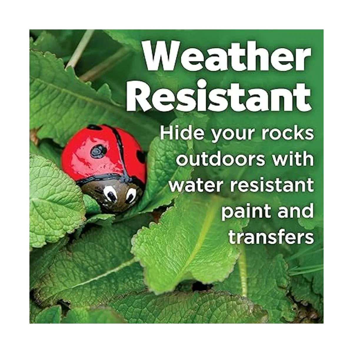 Suministros de arte impermeables: oculta tus rocas pintadas al aire libre El kit de pintura de roca Hide and Seek incluye 8 colores de pintura impermeables, pincel de pintura, diseños de transferencia de roca y calcomanías de seguimiento perfectas para pintura de roca principiante