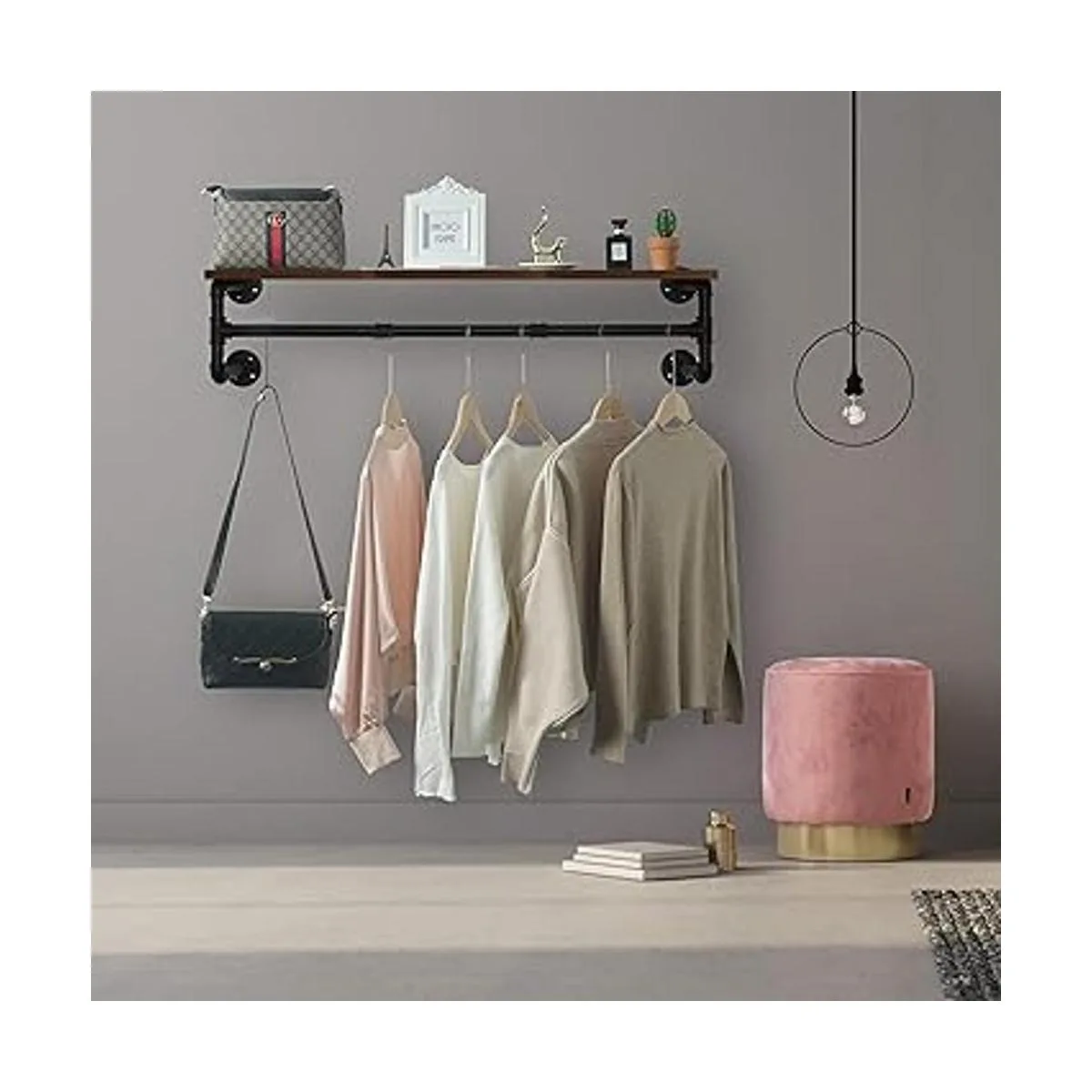 Multiusos: la barra de ropa industrial es fácil de combinar con varios estilos de decoración como granja rústica e industrial vintage. Se puede utilizar en la lavandería, dormitorio, entrada, tienda minorista de ropa, etc. Dondequiera que lo utilices, siempre entra en juego completo.