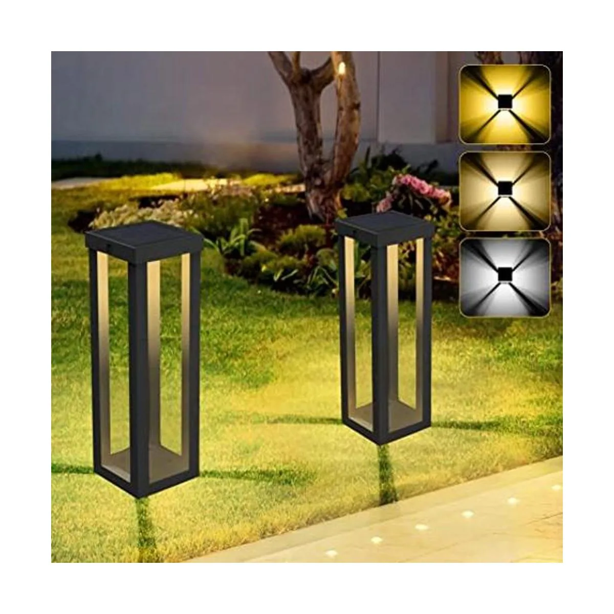Lámpara de pie solar única: luz de grado exterior brillante de alto lúmenes con 3 modos de luz: luz blanca brillante de 6000 K, luz blanca cálida de 4000 K y luz cálida de 3000 K. La duración de la batería de la luz de patio es súper larga, siempre está encendida toda la noche, la luz alta puede durar alrededor de 6 horas, y la luz baja puede durar alrededor de 12 horas. Ideal para jardín, camino, césped, patio, porche, terraza.