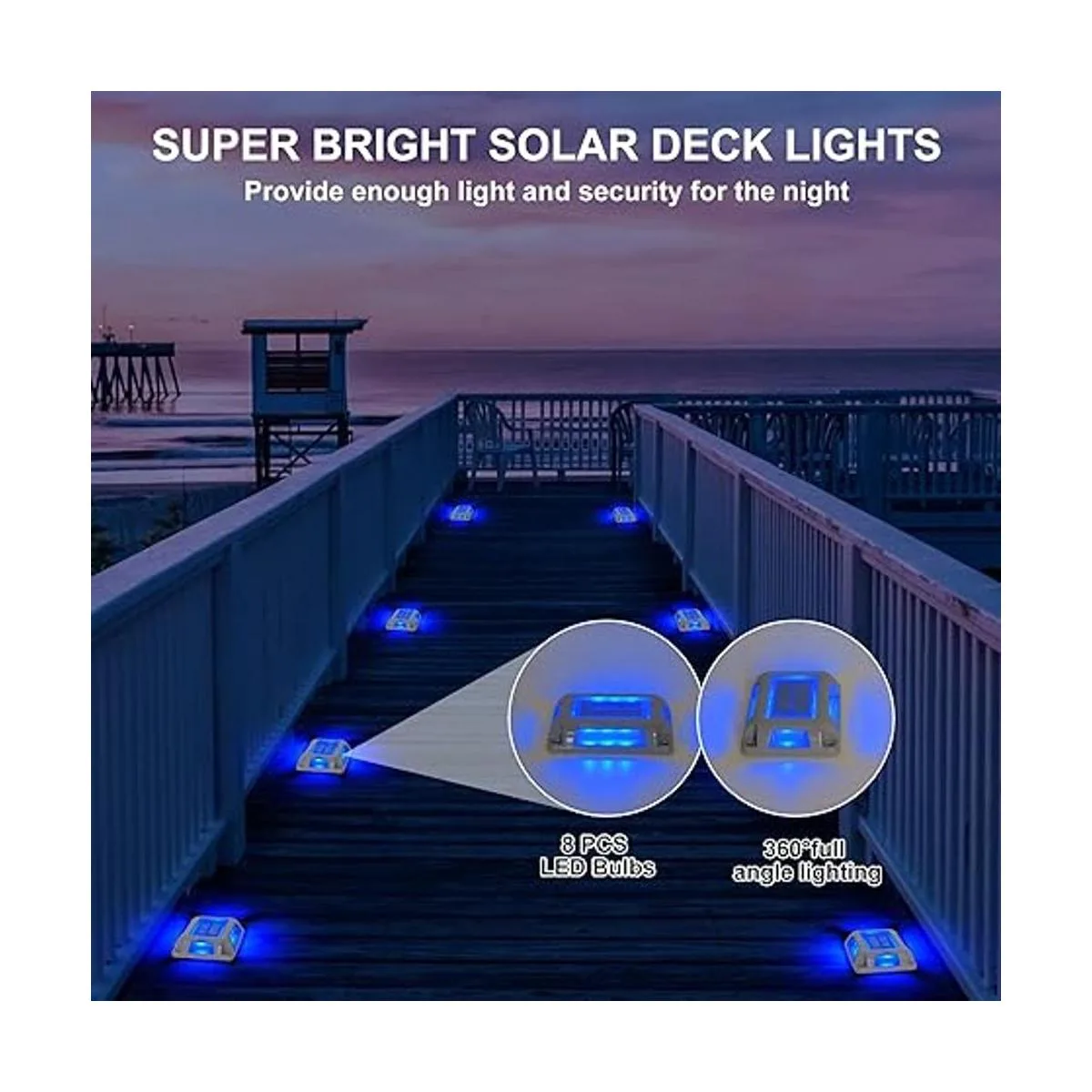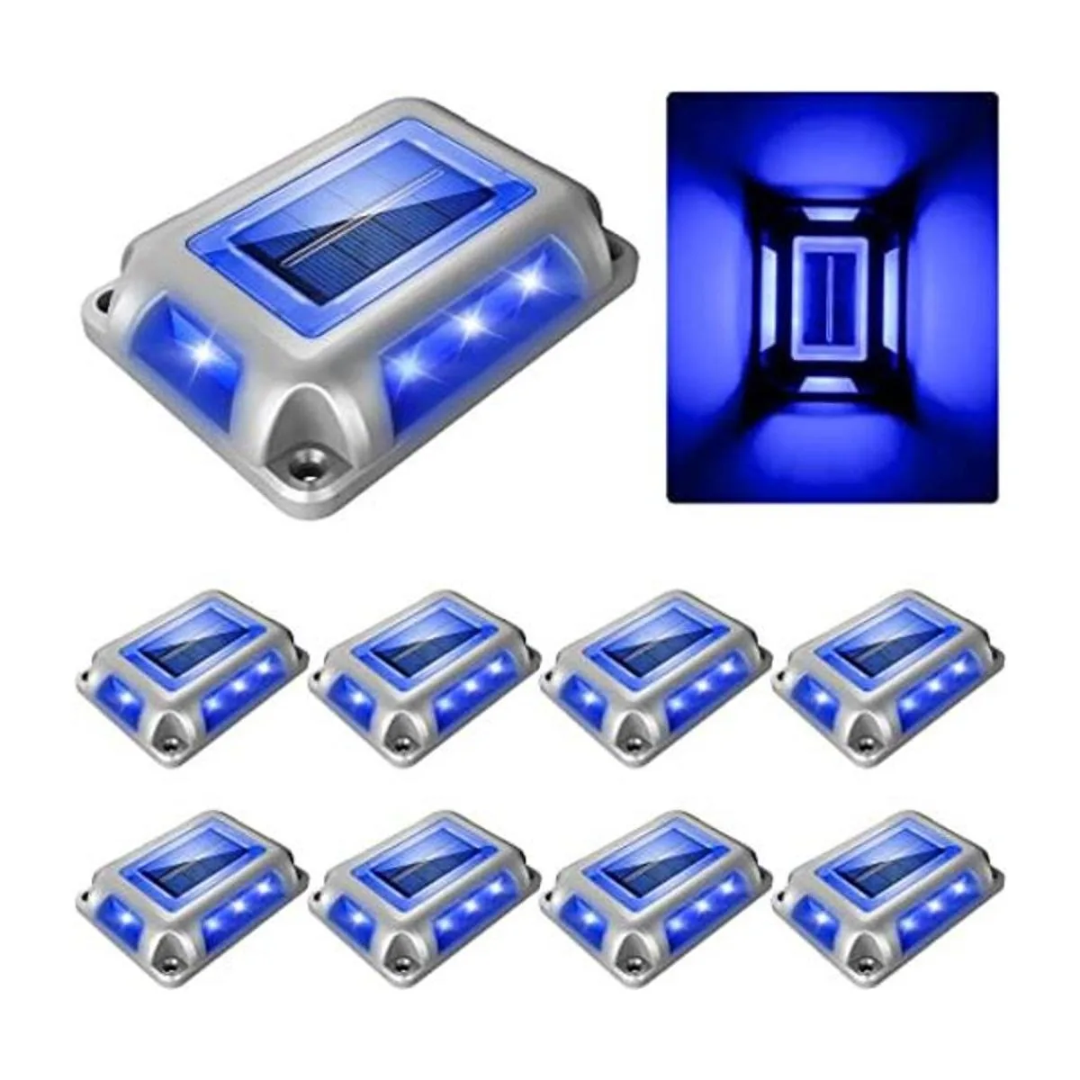 CREPOW Luces solares para cubierta de entrada, 8 paquetes de luces impermeables de 1200 mAh, alimentadas por energía solar, luces LED de aluminio, marcadores de carretera, luces de paso para entrada, acera, jardín, camino, patio azul