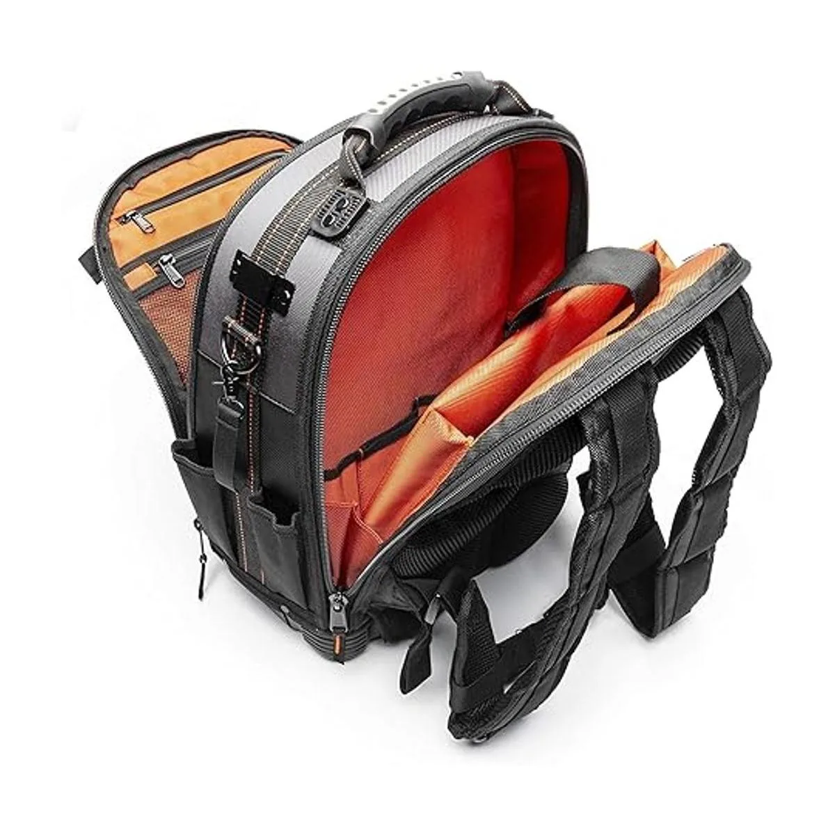 La mochila de grado profesional es ideal para el uso diario, con un bolsillo frontal ajustable para guardar artículos grandes como cables eléctricos.
