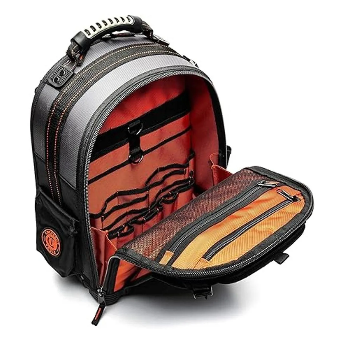 El interior naranja brillante te ayuda a encontrar tus herramientas más rápido en entornos más oscuros.