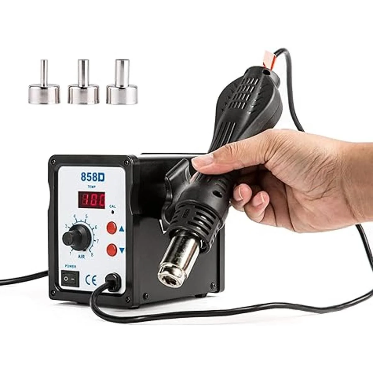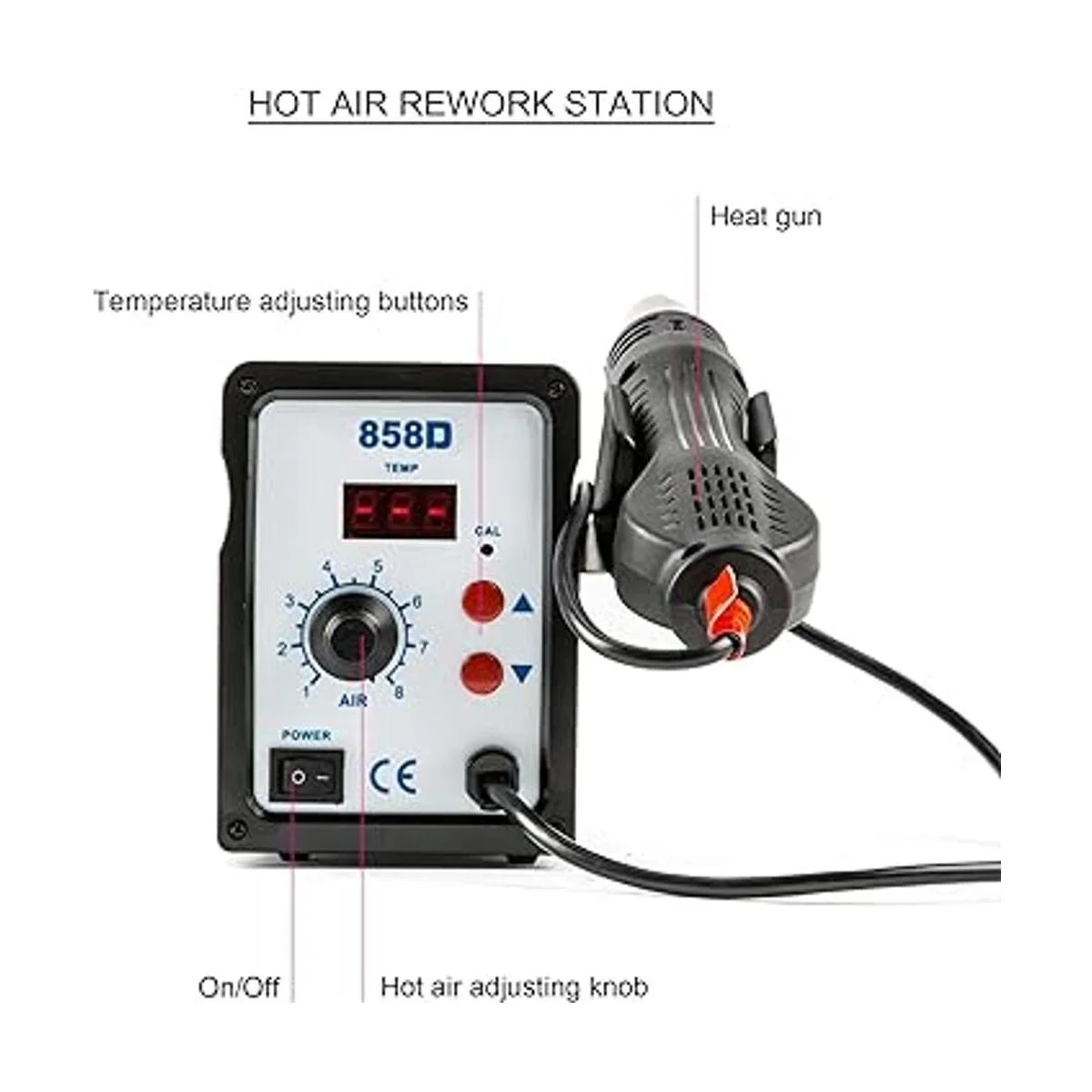 CREWORKS Estación de retrabajo 858D, estación de retrabajo de soldadura SMD de 110 V con juego de pistola de calor de aire caliente, pantalla digital LED, kit de hierro de soldadura para reparación de electrónica