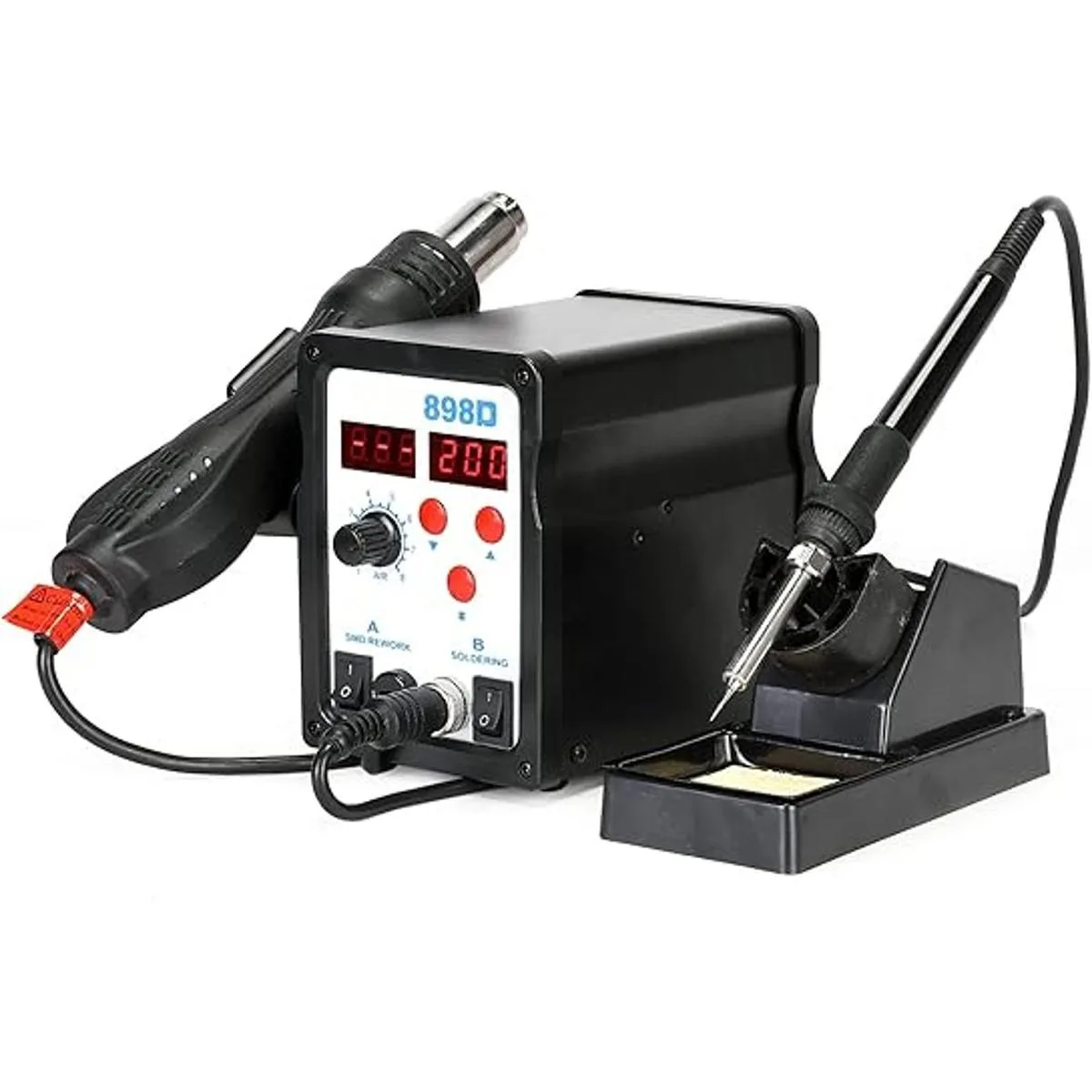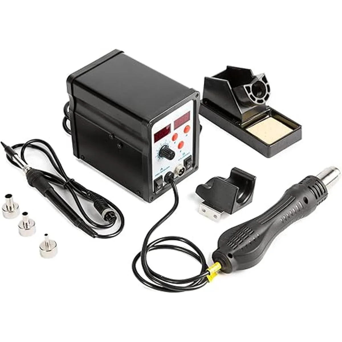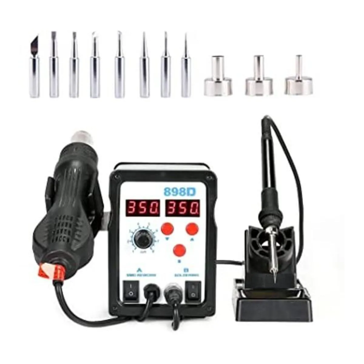 CREWORKS Estación de retrabajo de soldador SMD 2 en 1 con pantalla LED, kit de soldadura 898D con pistola de calor, herramienta de reparación electrónica digital con 11 puntas de soldadura