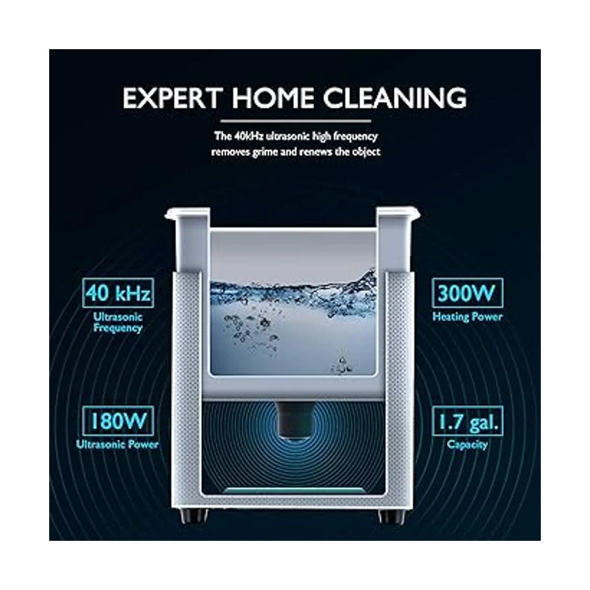 CREWORKS Limpiador ultrasónico con calentador y temporizador, máquina de cavitación sónica digital de 1.7 galones, limpiador de joyas de acero inoxidable de 180 W 6.5 L para herramientas profesionales de reloj, lentes de retención de dentaduras postizas y limpieza de monedas