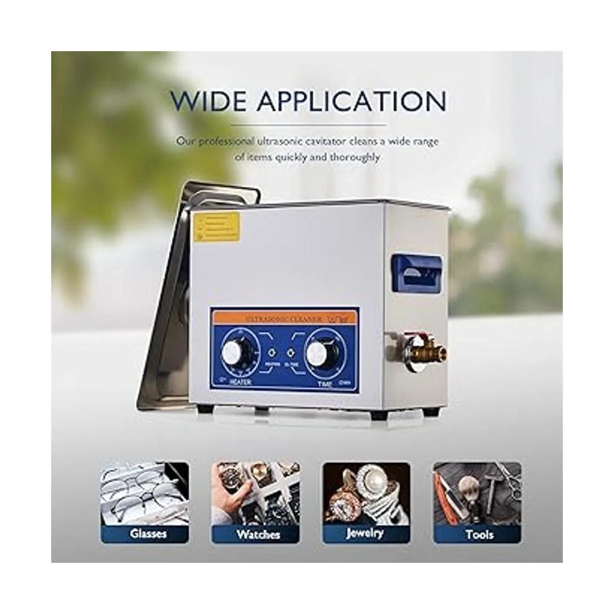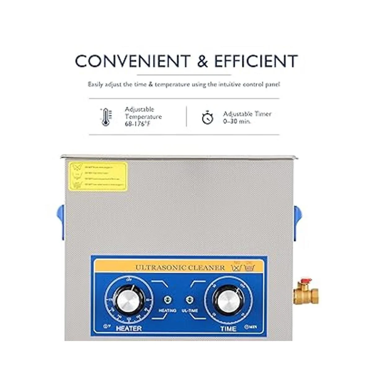Fácil de usar: llena el tanque con agua y cualquier limpiador necesario, coloca tus artículos en la cesta, ajusta la temperatura entre 68 y 176 F y el temporizador de 1 a 30 minutos en el panel de control, y pulsa el botón de encendido; la cavitación de 40 kHz de este limpiador ultrasónico portátil comenzará y tu objeto estará limpio en minutos