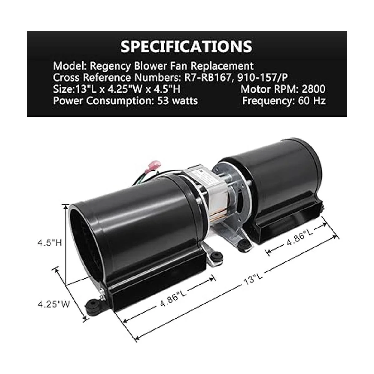 Criditpid Kit de ventilador de chimenea para chimenea Regency 910157P, ventilador de motor de ventilador para Hampton HI300, Osburn FD0061600, Rotom R7RB167 inserto de estufa de leña..