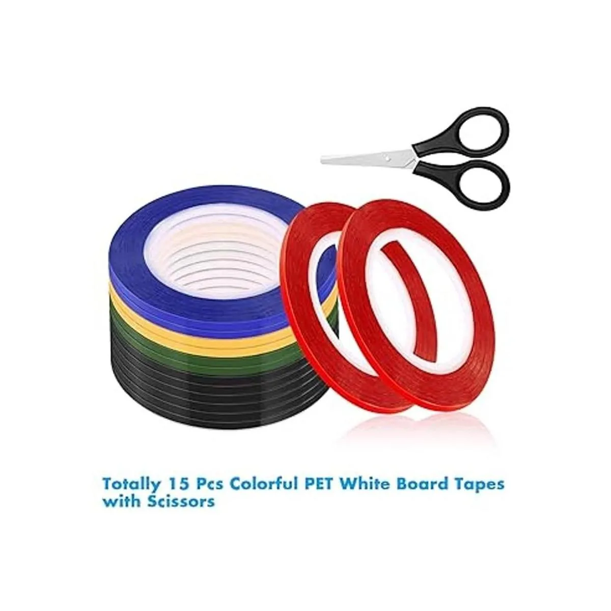Cridoz 15 rollos de cinta de pizarra blanca de 18, cinta de rayas de borrado en seco, líneas de cinta fina a rayas, gráficos gráficos, cinta de marcado de cuadrícula, 108 pies por rollo