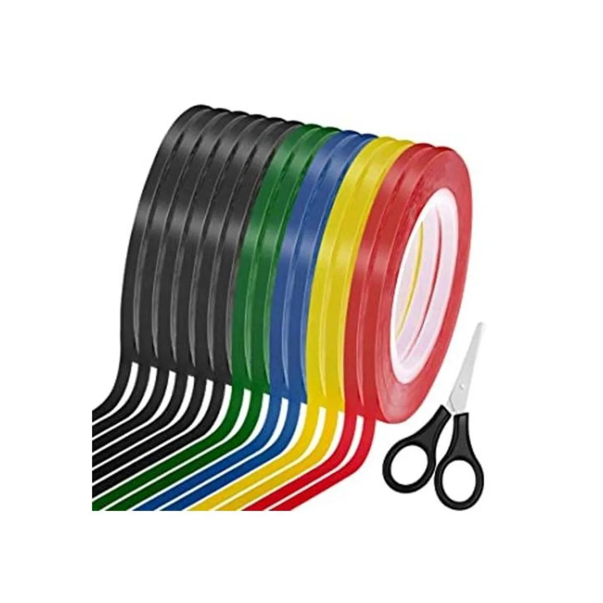 Se adhiere bien: hecho de PET, material duradero con autoadhesivo, estas líneas de cinta finas se adhieren perfectamente a la tabla con un fuerte adhesivo