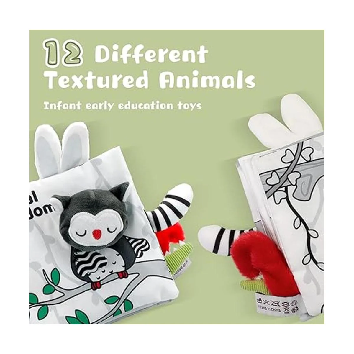 Crinkle Soft Libros para bebés de 0 a 6 meses, libro de tela de alto contraste con tacto 3D, juguetes sensoriales para bebés de 0 a 6 a 12 meses, juguetes de cochecito de aprendizaje temprano para bebés, juguetes de regalo de niños pequeños, colas de selva del bosque