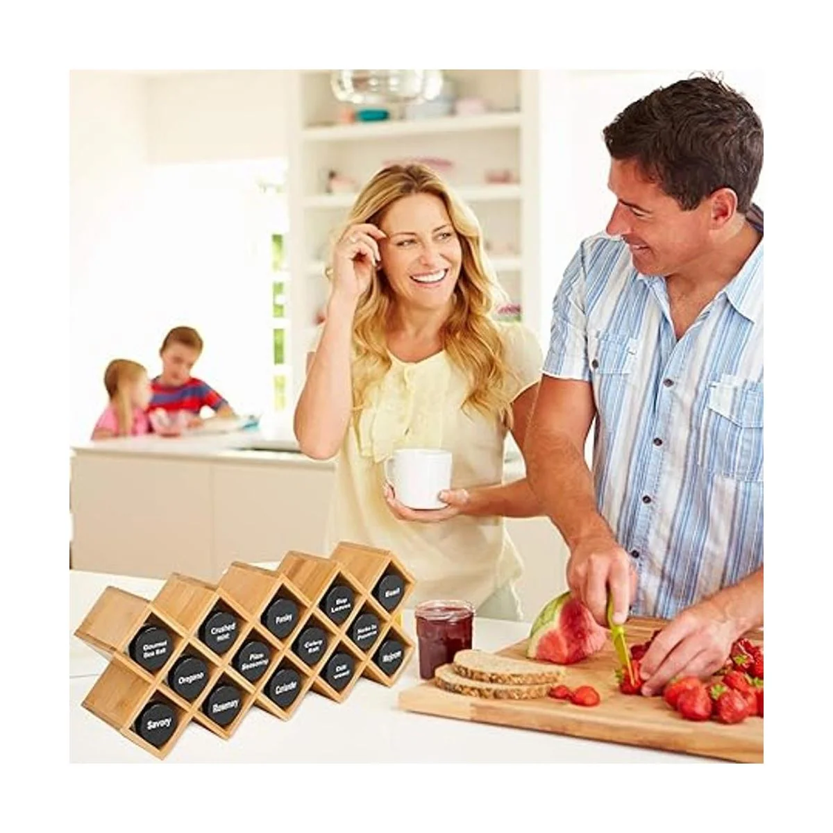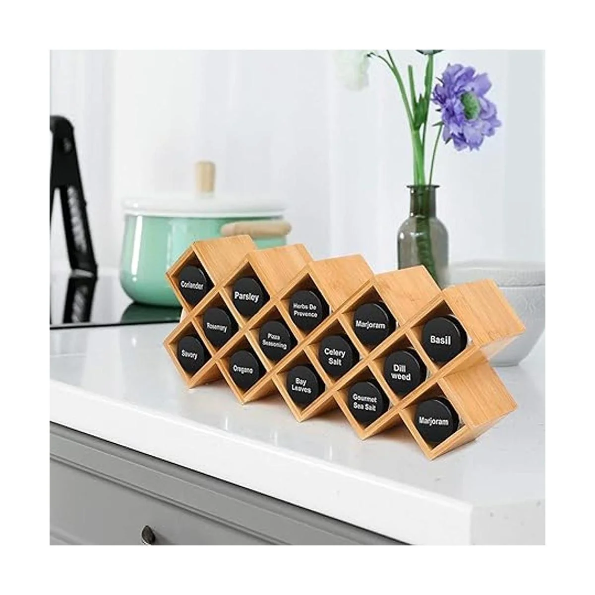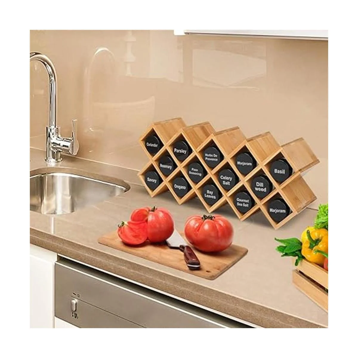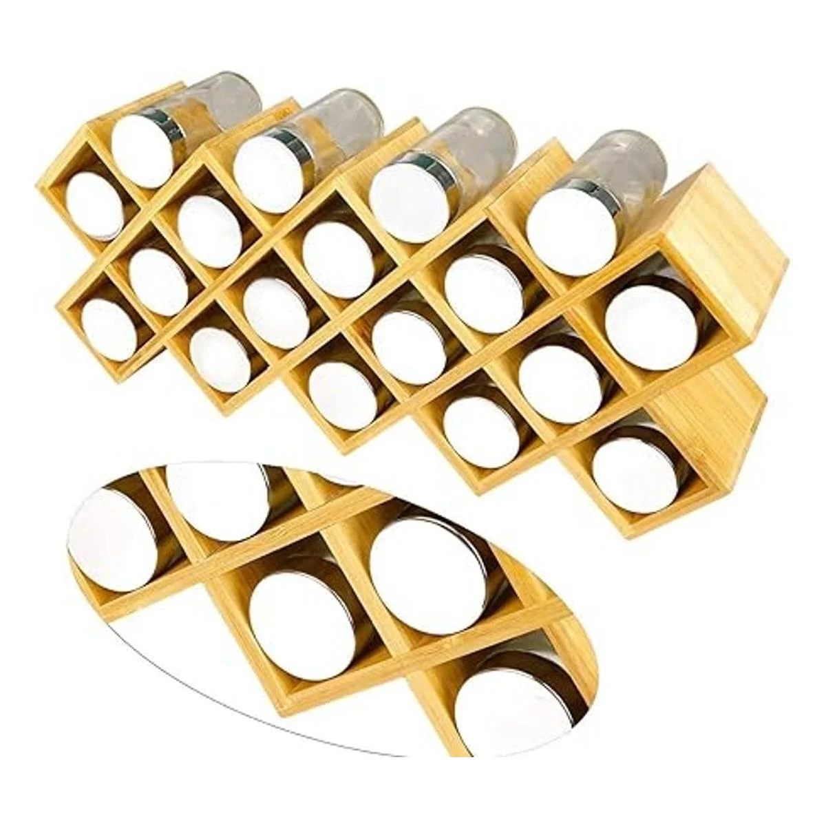 Opciones de almacenamiento versátiles: los tarros no están incluidos. El innovador diseño cruzado de bambú te permite colocar el estante en la encimera, colgarlo en la pared o guardarlo en un cajón de cocina. Es muy práctico, lo que liberará espacio para almacenar otros ingredientes de cocina.