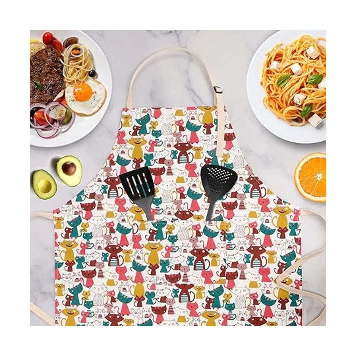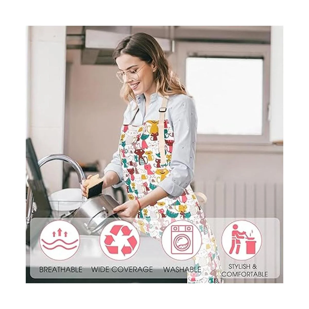 Delantal de hornear y cocinar de alta calidad para mujer: ya sea que estés preparando una comida diaria para tu familia o organizando una gran fiesta o evento social, te encantará este delantal muy cómodo y totalmente protector Hecho de algodón puro y grueso, protegerá tu ropa de derrames y manchas.