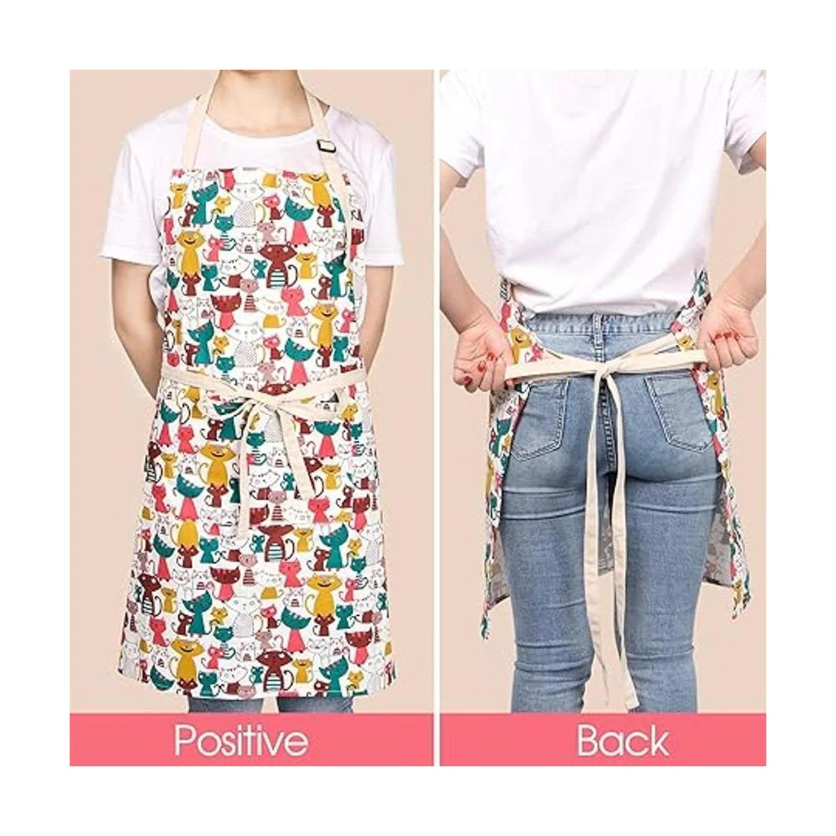 CRJHNS Bonito delantal con 2 bolsillos para mujer, correa ajustable para el cuello y lazos largos en la cintura, delantal de algodón para hornear, uso como delantal de cocina y chef, delantal de artista o jardín magdalena