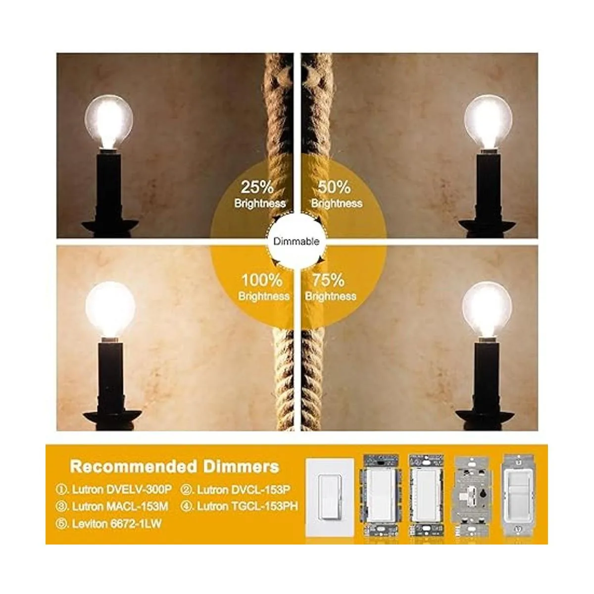 Blanco suave de 3000 K Estilo vintage Edison G16 forma de globo G16, 3000 K brillo blanco suave, el color luminoso de las bombillas 3000 K luz un poco más blanco que las bombillas incandescentes tradicionales, 3000 K produce un ambiente suave, cómodo y saludable, ángulo de haz de 360 grados, con menos calor y encendido instantáneo